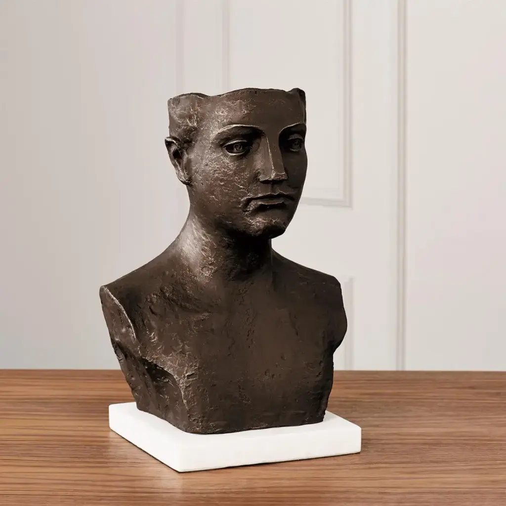 A new take on the bust, this chiseled iron sculpture has an abstract crown and a white marble base. From a fashion forward perspective, Global Views offers accessories, furniture, statement lighting, and an assortment of rugs and mirrors to add beauty and joy to your home.