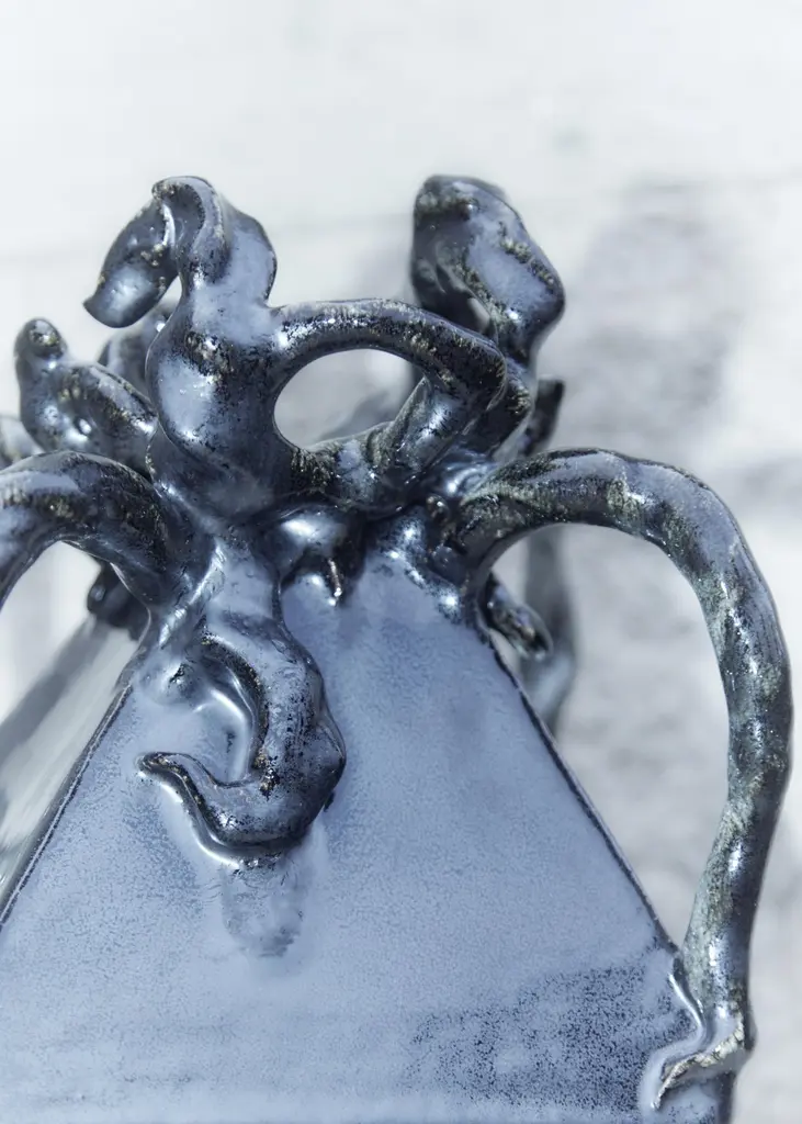 Here My Soul Sculpture in Glazed Ceramic by Lucile GracileDimensions: D 25 x W 25 x H 40 cm. Materials: Glazed ceramic.Born in 1988, lives and works in Paris.Ceramic artist using traditional plate modeling techniques, her work is based on the combination of primitive and universal forms to create designs that carry dreamlike symbolism.For her, our society tends to confine dreams and creative expression tochildhood, values becoming derisory in adulthood, to the detriment ofefficiency and productivity.Through her sculptural objects, she seeks to let her inner child and herUtopias express themselves.Everyone can see personal meanings, thus reconnecting with theirpast imagination.Her imagination is nourished by ancient mythologies and the immemorialThe fascination of human beings with the afterlife.Her work is derived from the symbolism of stars, esoteric rituals andspiritual places.