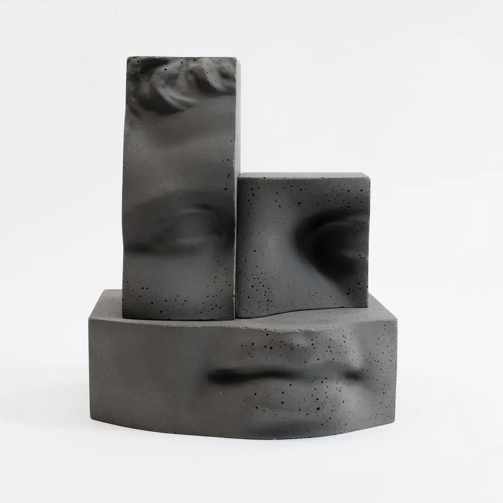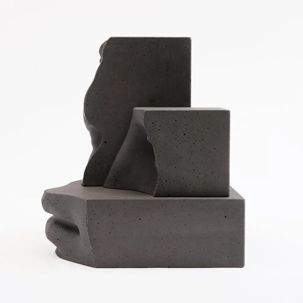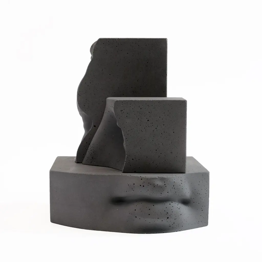 Contemporary Paolo Giordano Hermes abstract sculpture concrete cement cast greyHermes is concrete sculpture. It's part of a large work that is also photographic: 'Digital Journey into the Classic’, where the original classic is provocatively manipulated, cut and distorted. The project draws from an archive of classical Greek and Roman beauty.A bulky heritage for those who, like me, no longer seek balance and perfection of form, but still look to the past as an immense source of inspiration. In this series of objects and images I have provocatively given life to virtual and abstract sculptures, which maintain strong physicality.Hermes becomes a real physical sculpture, composed of 3 pieces that can be superimposed or juxtaposed.Designed by Paolo Giordano.Made in Italy.