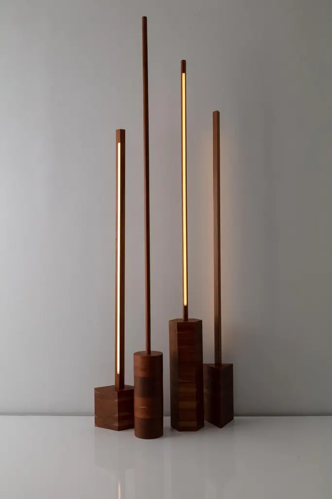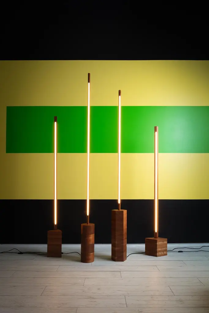 Fort Makers' Hexagon Cherry Line Light is made in Brooklyn by Noah Spencer. This sculptural LED light juxtaposes hard lines with soft reflected light and emits an ambient aura. The lifespan of an LED strip is approximately 50,000 hours.12 Volts LED light, 60 Watt, 2,400 ° KMaterials: solid American cherry, warm white LED strip light, plastic diffuser lens, 10' nylon covered cord
