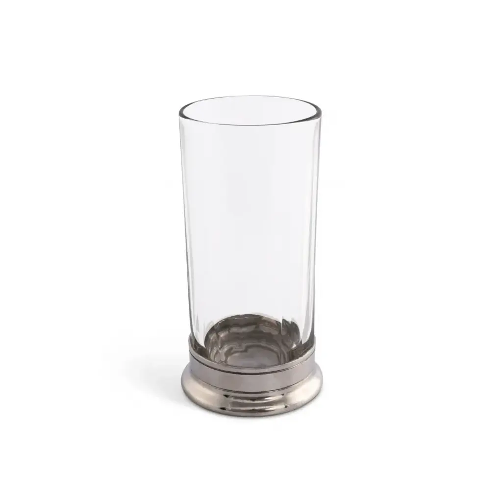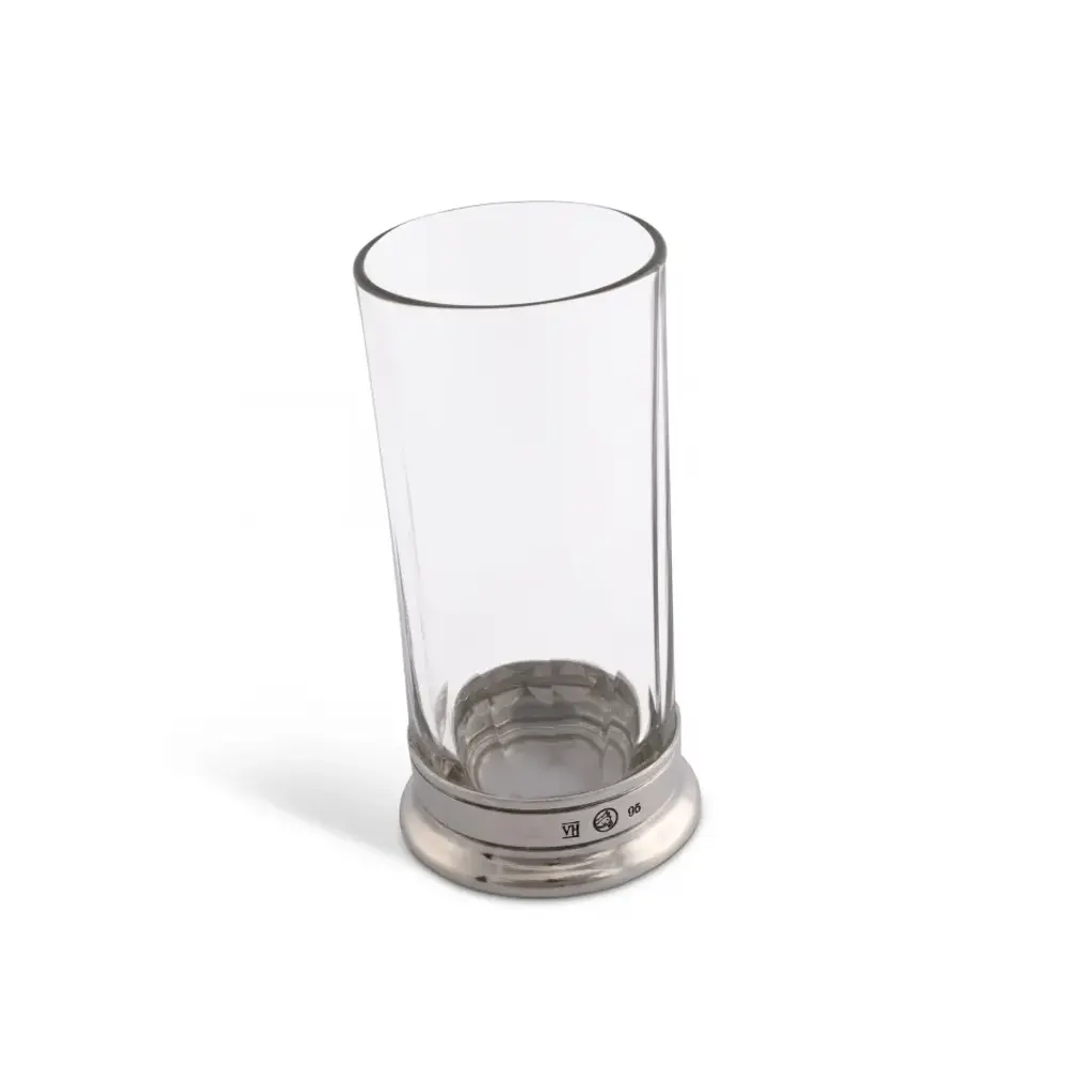 Enhance your drinking experience with an elegant highball glass that stands for your taste and style. Our tall glass features a hatched pattern and a pewter base bottom with an engraved horse. Ideal for adding an opulent accent to your equestrian lifestyle. Handcrafted by our artisans at Vagabond House, these luxurious highball glasses have a pewter base that adds sturdiness, making these shatterproof drinking glasses last a lifetime. Use this rustic glass for beers, cocktails, soda, regular or sparkling water. Vagabond House is a family-owned American company specializing in fine pewter tableware, servingware and giftware. Largely inspired by nature, their exclusive products are designed to be unique, functional heirlooms for those who seek to express tradition and style in both family and formal entertaining.