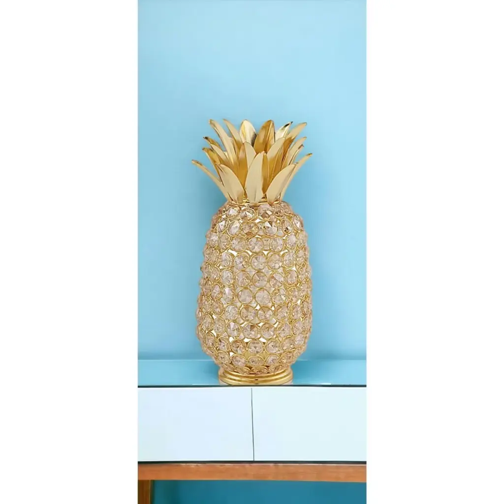 Homeroots 11" Faux Crystal And Gold Pineapple Sculpture