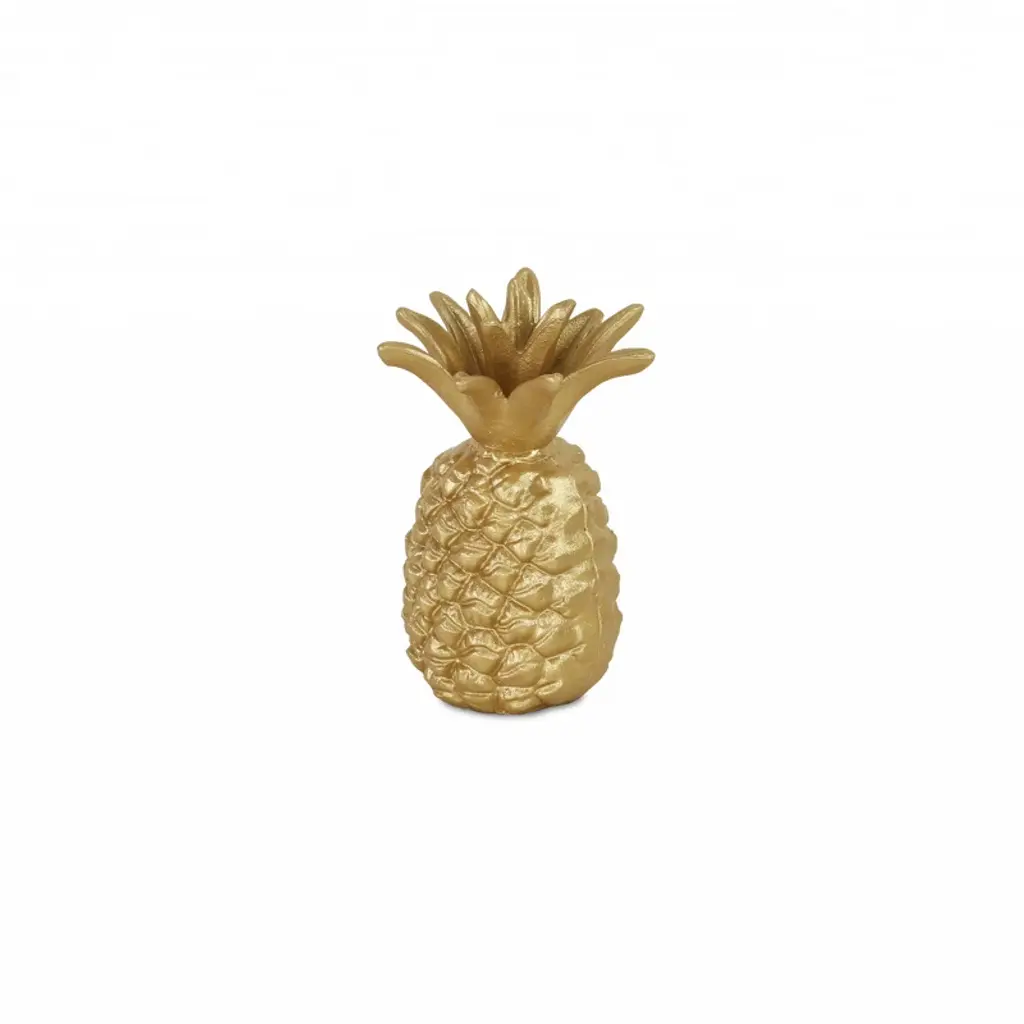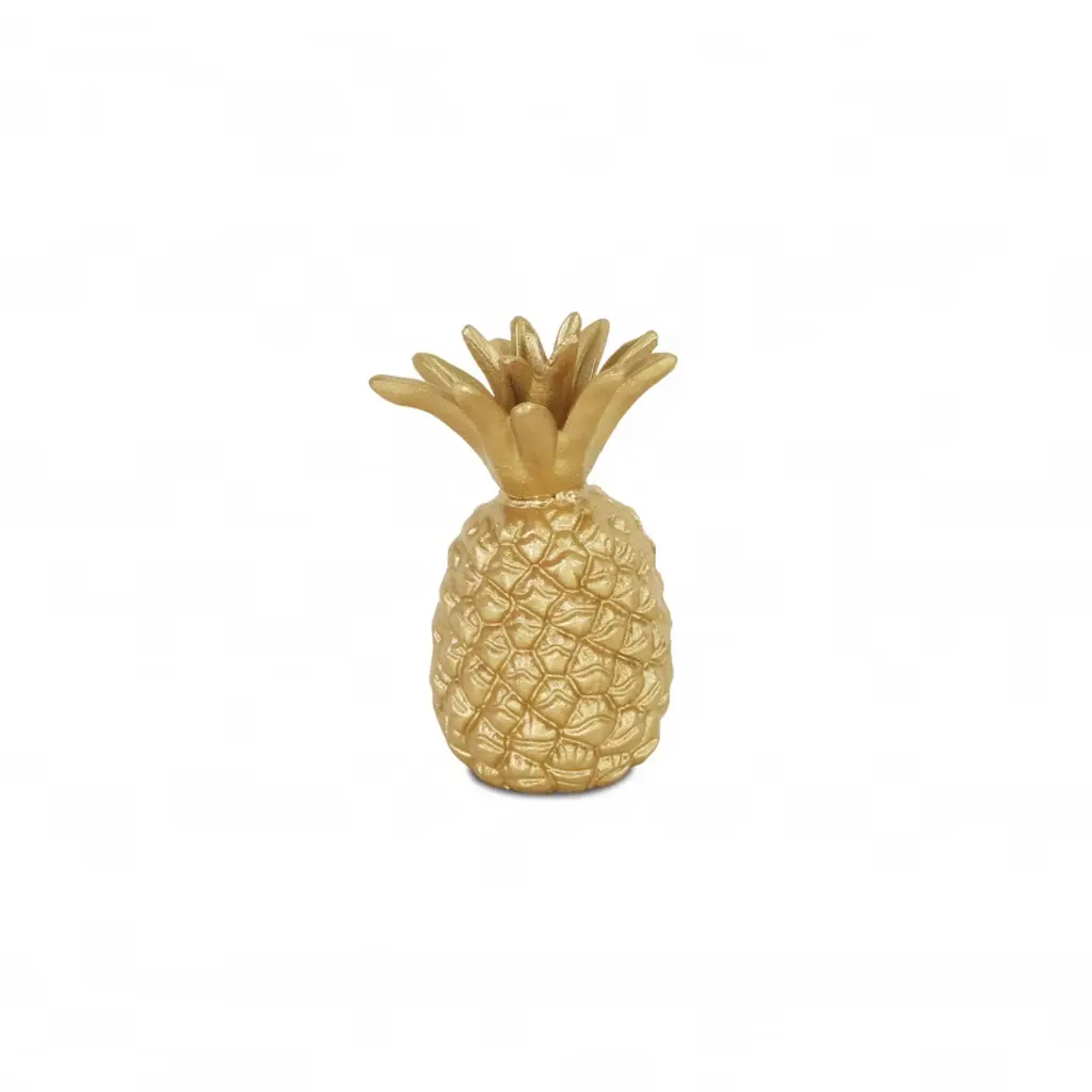 Homeroots 8" Gold Cast Iron Pineapple Hand Painted Sculpture