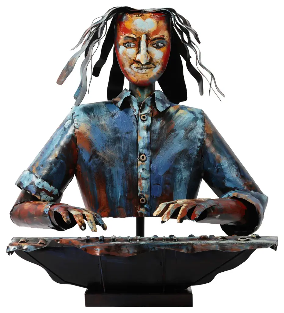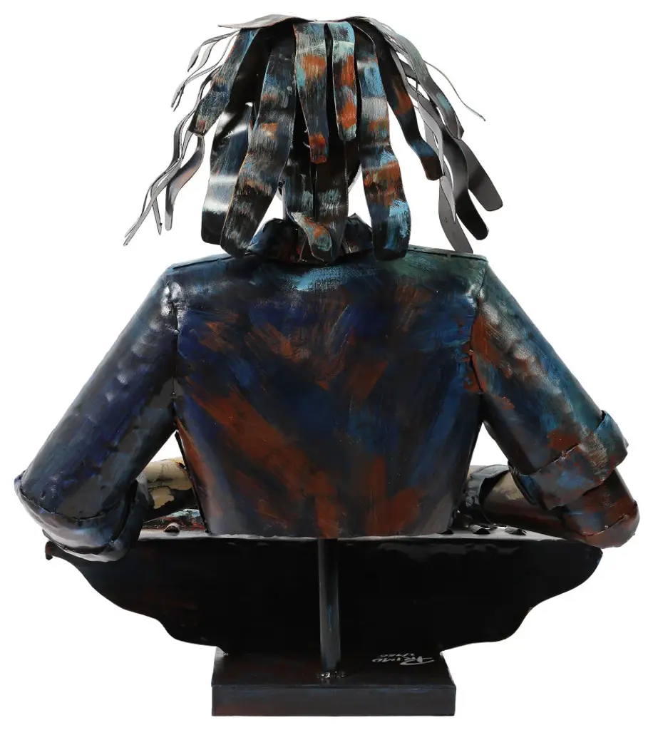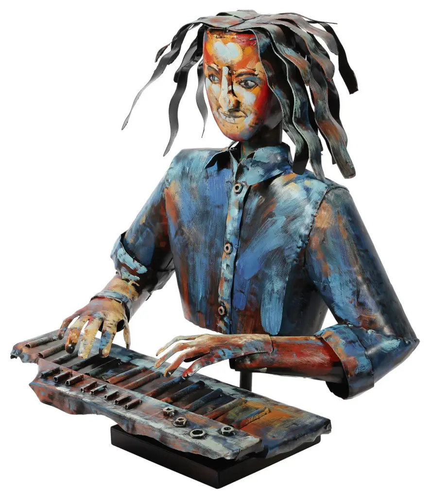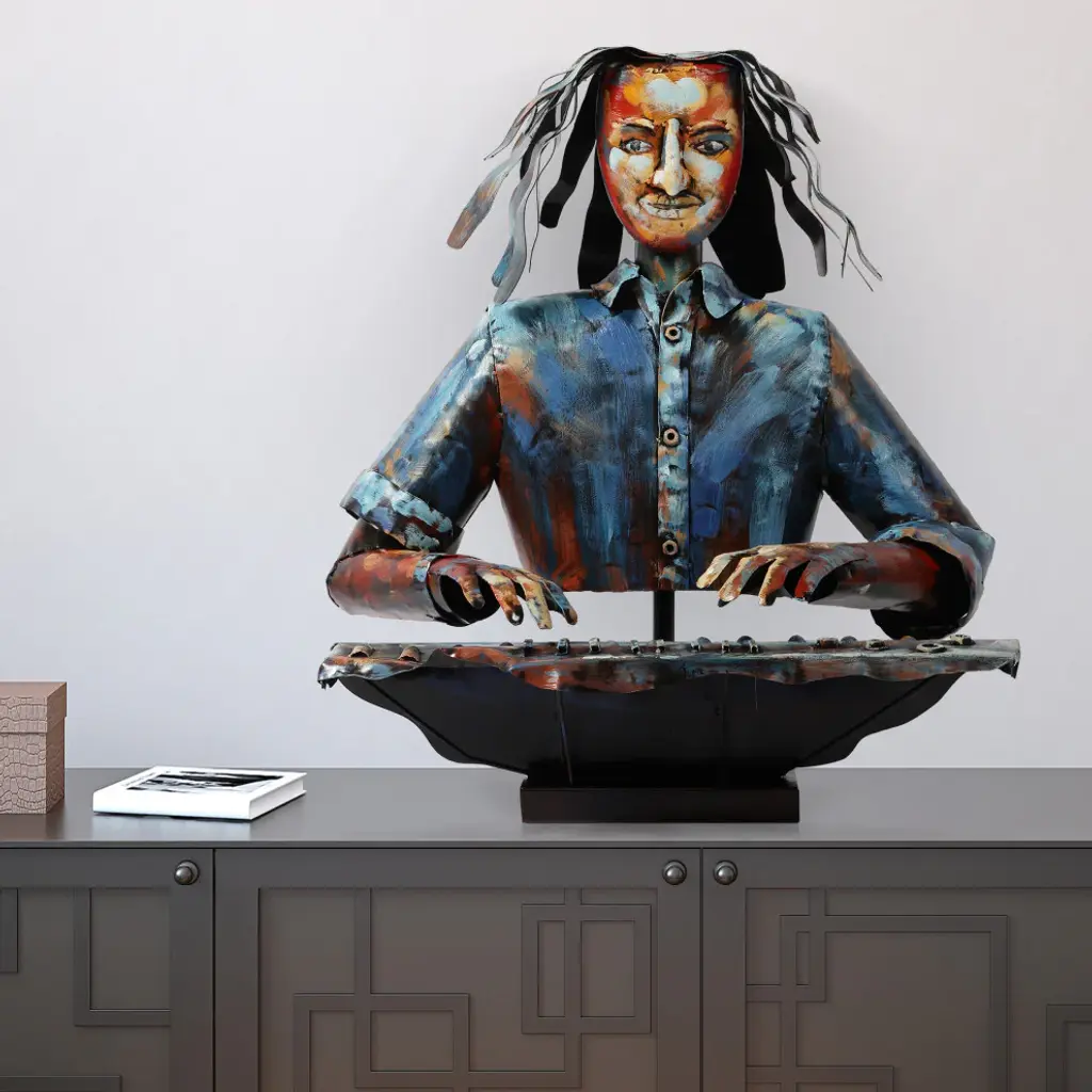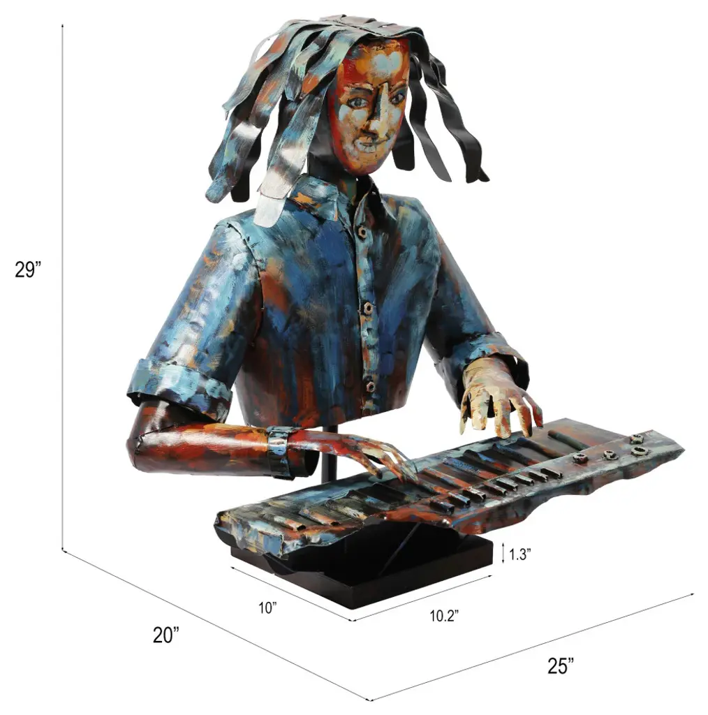 "Homme" Iron Hand-Painted Colorful Art Sculpture, Multi Color, The Pianist