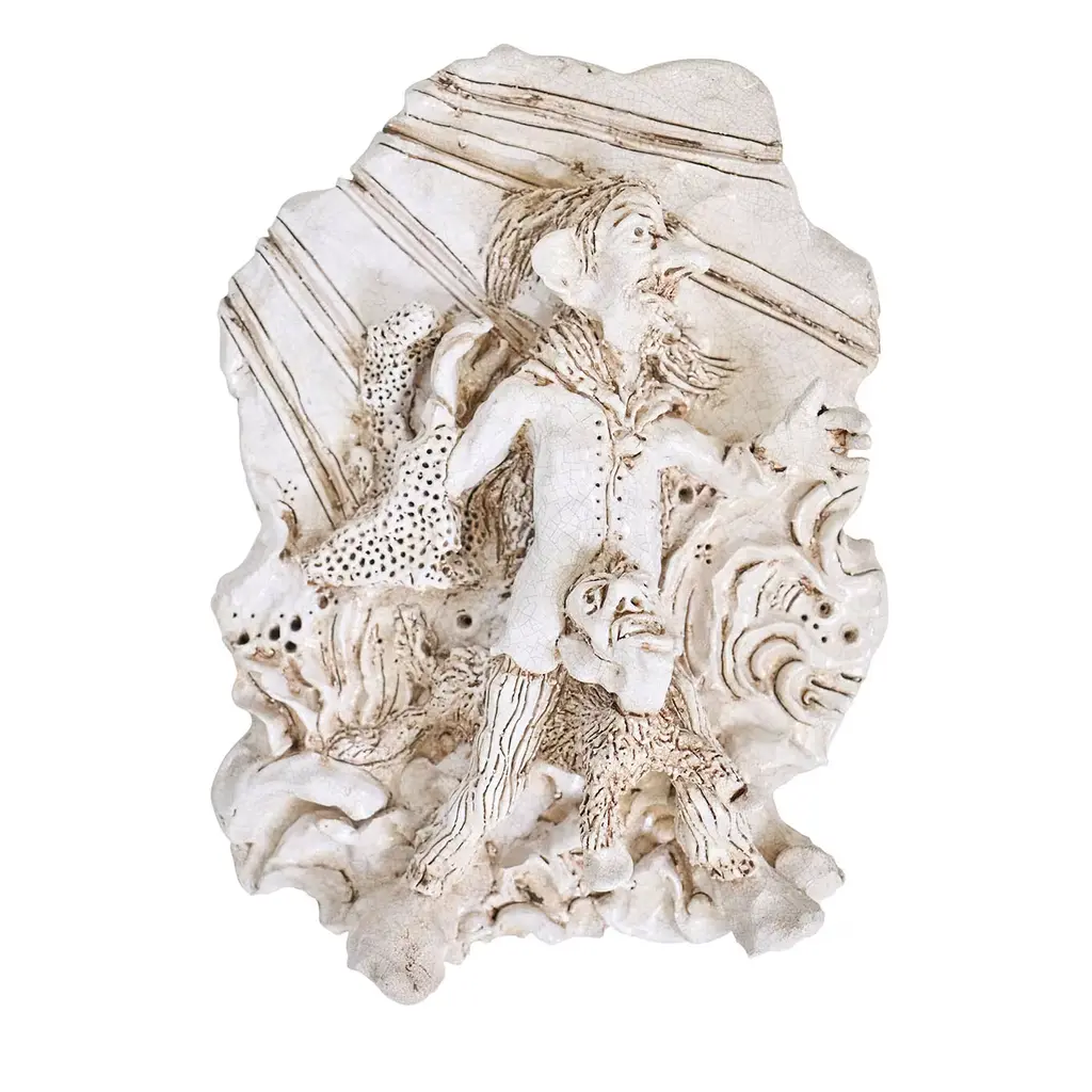 The Medium Hoot Owl was created by Thai artist Arjan Deng, who is known for his one-of-a-kind ceramic statues of emotionally evocative characters. This is his interpretation of the wise animal, made of terracotta that is splattered with a reactive glaze to bring the sculpture a sizable dose of texture and character.