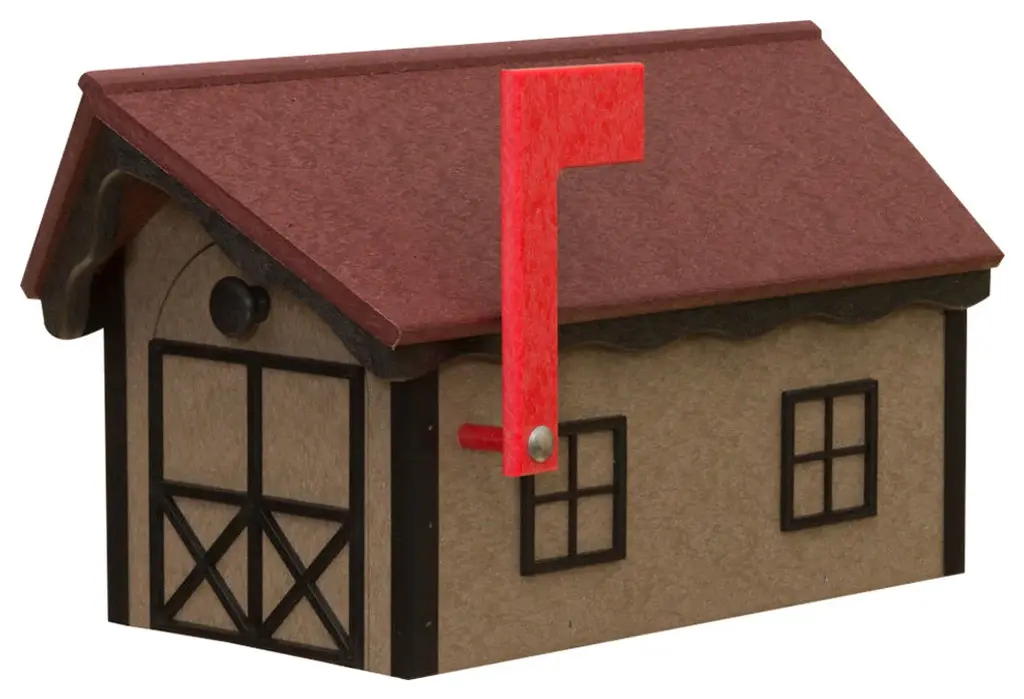 Amish handcraftedhorse barn mailboxweatherproof poly in multiple color combinations what a first impression and fantastic addition to your home''s curb appeal!manufactured at an old order amish homestead in lancaster pa, this mailbox is meticulously handcrafted from high density poly plastic to stand the test of time and use. Poly lumber is made of recycled high-density polyethylene materials. It resists splintering and rotting. No need for chemical weatherproofing treatments. It is also impervious to normal wood-destroying pests.bright and beautiful high quality poly plastic will last forever! Unlike mass-produced versions, these are individually handmade utilizing generational techniques and high quality materials. measures: 22"l x 11"w x12"h easy to install with pre-drilled mounting holes resists splintering and rotting durable, heavy-duty colorful poly plastic fade, rot & insect proof eco-friendly made from recycled plastic bottlesplease note: each is individually handmade-to-order by amish craftsmen guaranteeing you a unique, true one-of-a-kind piece.