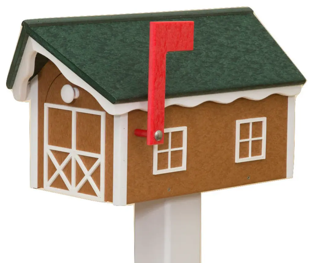 Amish handcraftedhorse barn mailboxweatherproof poly in multiple color combinations what a first impression and fantastic addition to your home''s curb appeal!manufactured at an old order amish homestead in lancaster pa, this mailbox is meticulously handcrafted from high density poly plastic to stand the test of time and use. Poly lumber is made of recycled high-density polyethylene materials. It resists splintering and rotting. No need for chemical weatherproofing treatments. It is also impervious to normal wood-destroying pests.bright and beautiful high quality poly plastic will last forever! Unlike mass-produced versions, these are individually handmade utilizing generational techniques and high quality materials. measures: 22"l x 11"w x12"h easy to install with pre-drilled mounting holes resists splintering and rotting durable, heavy-duty colorful poly plastic fade, rot & insect proof eco-friendly made from recycled plastic bottlesplease note: each is individually handmade-to-order by amish craftsmen guaranteeing you a unique, true one-of-a-kind piece.