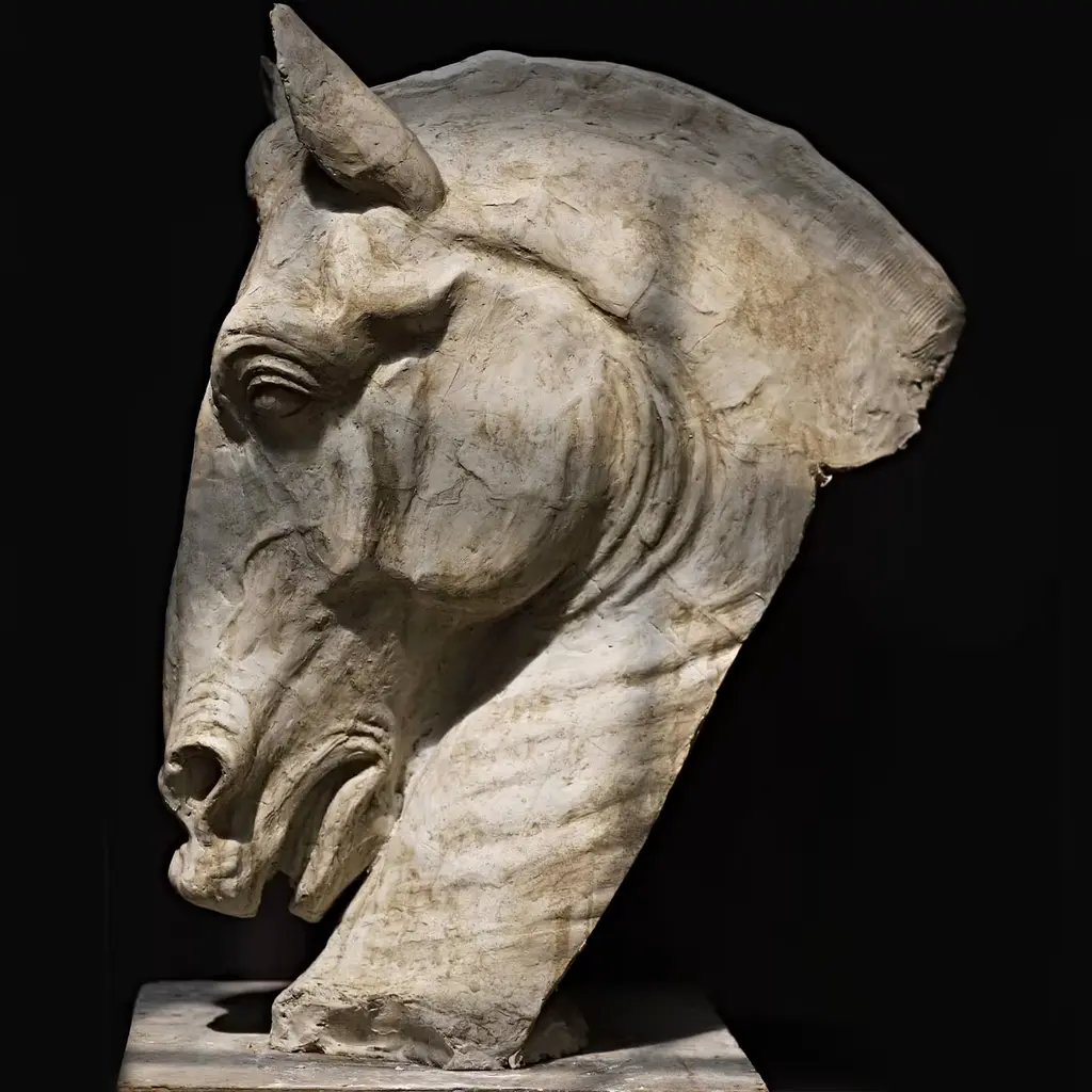 A magnificent and iconic piece that merges art and design, this gypsum sculpture will make a refined statement when showcased in any traditional or modern interior alike. A meticulous showcase of craftsmanship by Romanelli's artists, it was originally an anatomical study by Romano Romanelli (1882-1968) for his equestrian monuments. Rich in details, this piece is revisited with an elegant modern flair.