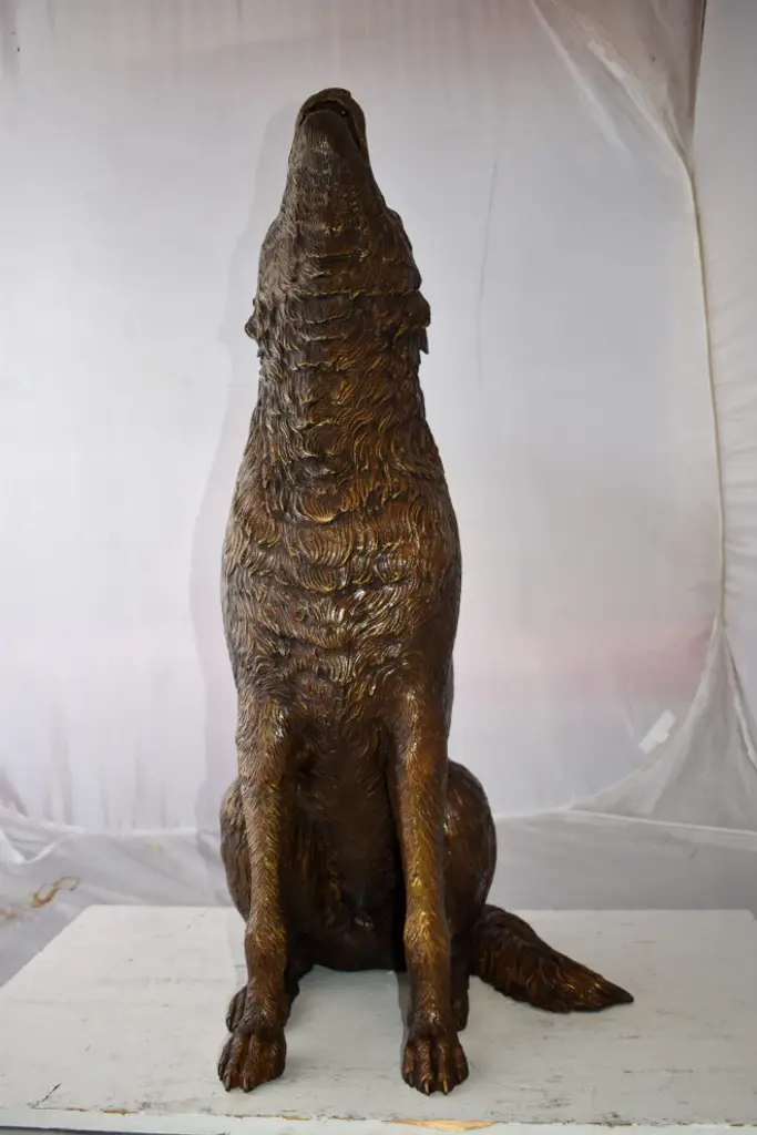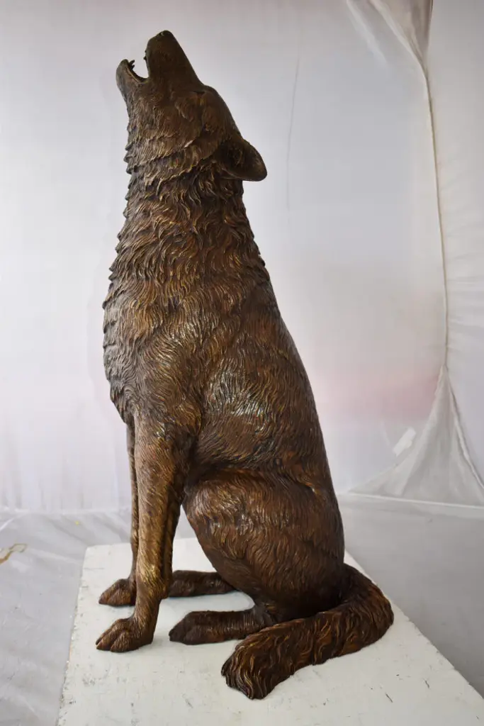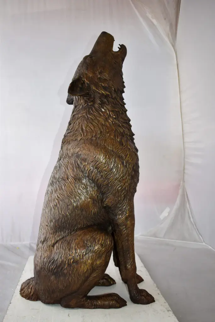 Howling Wolf Looking Toward The Sky Bronze Statue Size: 19" X 19" X 36"h