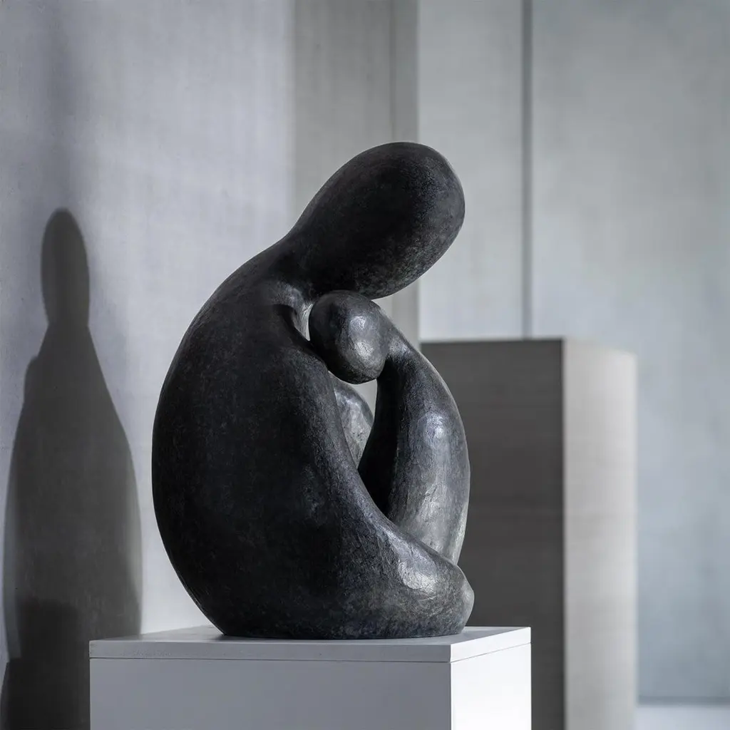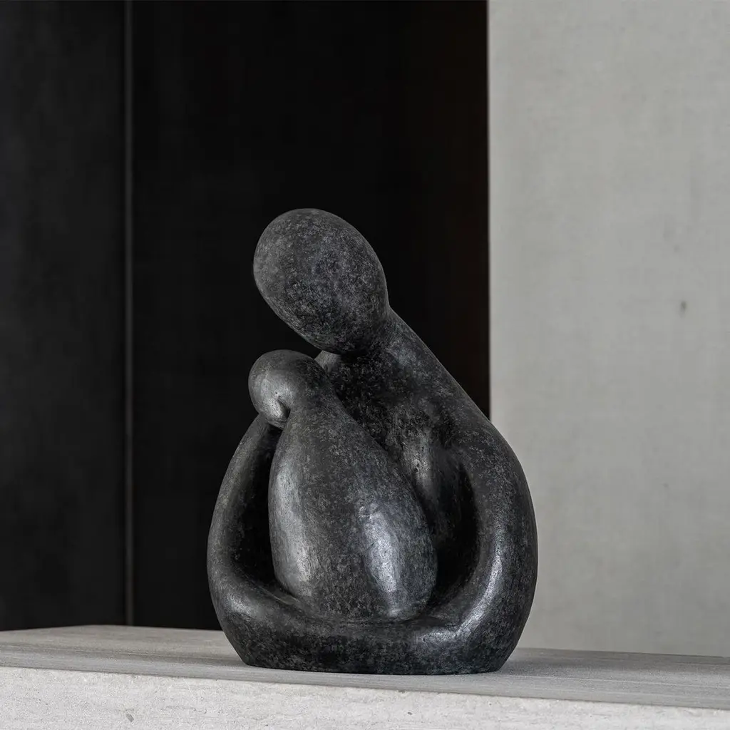 Sculpture Human and Child bronze all in green solid bronze, lost wax bronze technic.