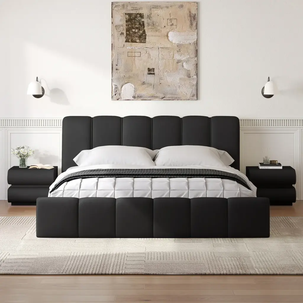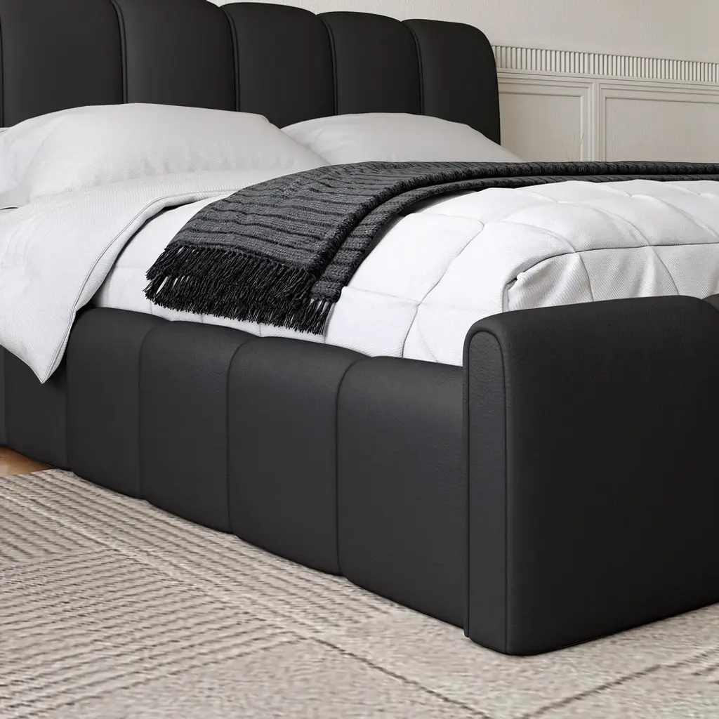 Discover sophistication and comfort with our exquisite PU leather wingback bed frame. Meticulously crafted to blend luxurious aesthetics with modern functionality, this bed frame is designed to elevate your bedroom experience to new heights. 【Premium PU Leather】 Immerse yourself in opulence with our premium PU leather, meticulously selected for its exquisite texture and lasting durability. This luxurious material not only exudes elegance but also offers easy maintenance for effortless upkeep. 【Wingback Design】 Make a bold statement with the stunning wingback design that adds a touch of grandeur to your bedroom decor. The gracefully arched headboard creates a captivating focal point, while the clean lines of the frame embody contemporary sophistication. 【Carbon Steel Frame】 Experience unparalleled stability and support with the robust carbon steel frame of our bed. Engineered for longevity and resilience, this frame ensures a solid foundation for restful nights and rejuvenating sleep.