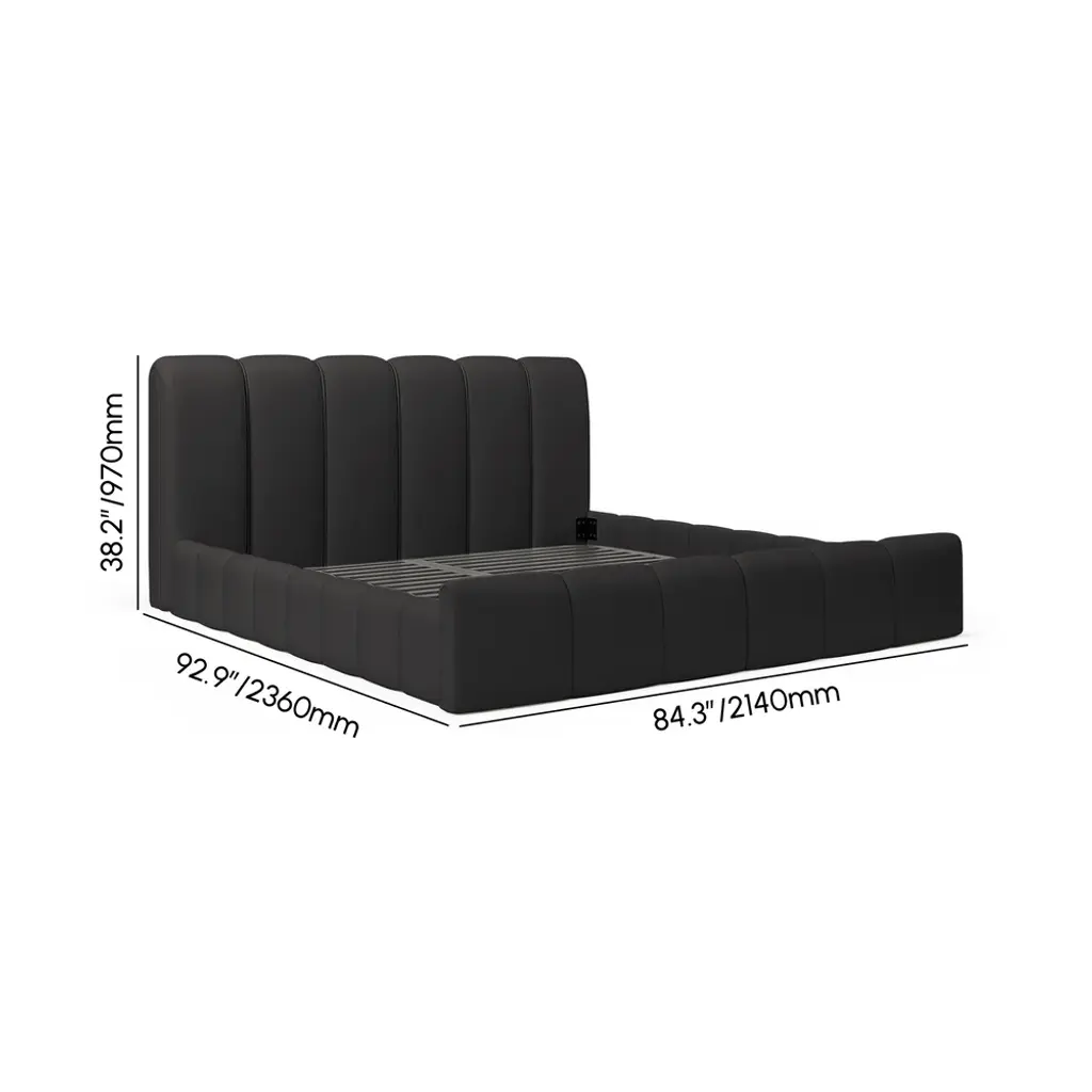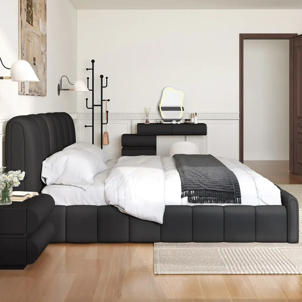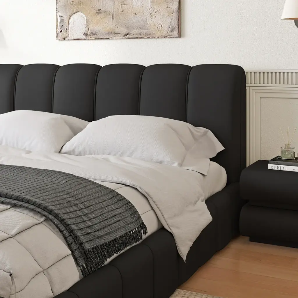 Humply Modern Leather Wingback King Bed Frame With Upholstered Headboard