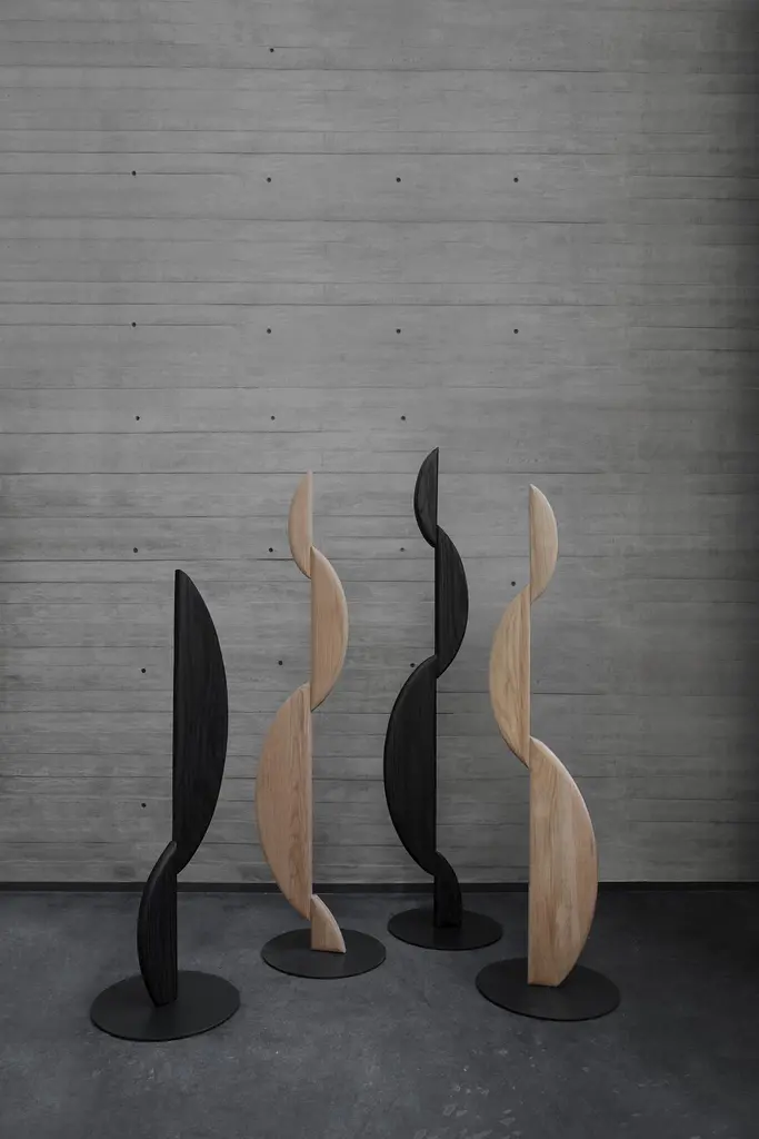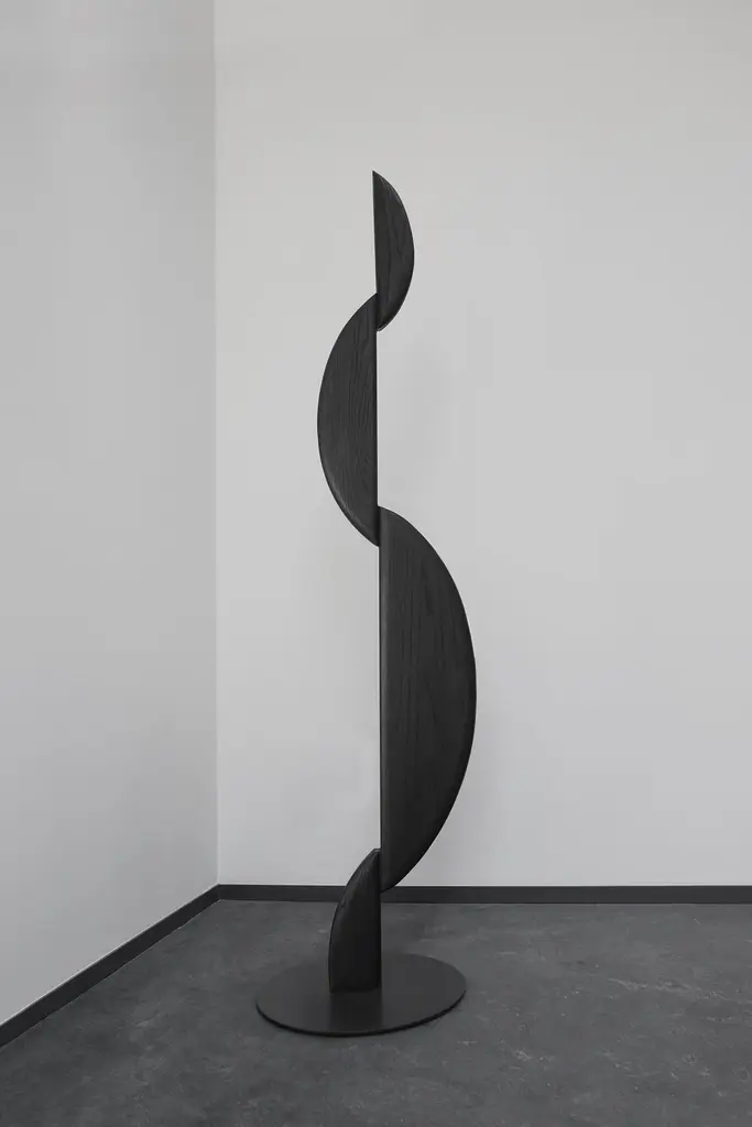 I Primera sculpture by Joel Escalona.Dimensions: D 45 x W 45 x H 190 cm.Materials: oak wood, metal.Also available in natural oak finish.Sculpture made of white oak or natural white oak with burnt finish option and metal base.Joel EscalonaHe was born in Mexico City and studied Industrial Design at the Universidad Autónoma Metropolitana.Currently, in addition to being director of his own design studio, Joel Escalona is Creative Director of BREUER, co-founder and active member of Cooperativa Panorámica, as well as being a professor at ITESM and CENTRO Universities.BREUER is a company specializing in the design and manufacture of custom furniture and spaces, which began in 1993 in Mexico City under the direction of Arturo Verástegui.Since the beginning of the nineties Arturo Verástegui, founder of the company, began his career in the world of furniture: beginning with the distribution and manufacture of residential furniture and with more than a decade of experience in commercial furniture, BREUER was born with a strong industrial and trade vocation.That is only one part of our history, the other began almost 100 years ago with the architect and designer Marcel Breuer, from whom our name arises. But it is not only the name that we take from Marcel Breuer, but also his modernist ideals and the desire to implement the latest in manufacturing technology is his designs.