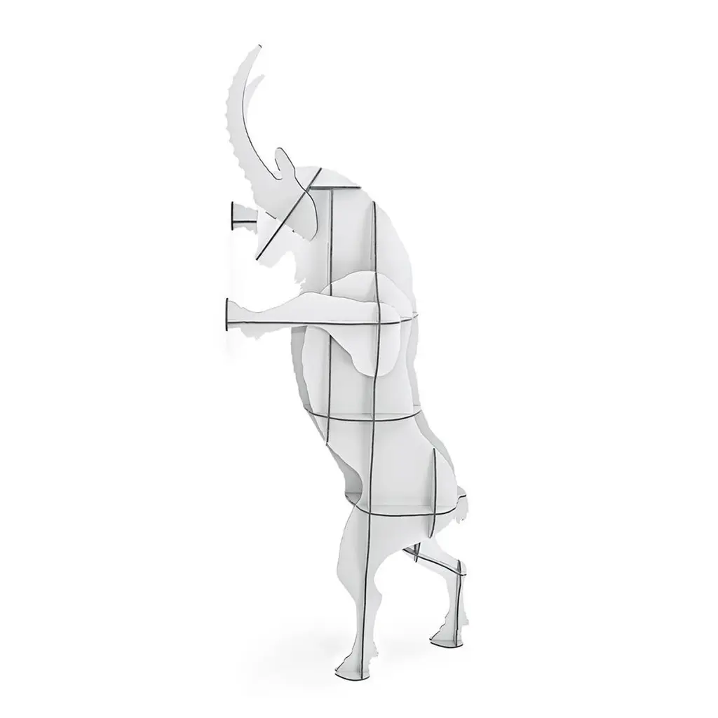 Star climber of the Alpine passes or mythical hero of literature? The ibex Fausto is an imposing sculpture, which can be placed against the wall or placed in a duo face to face, which embodies the raw and primitive force of nature.The Fausto bookcase is part of Ibride's Mobilier de Compagnie collection, where animal shapes are reinvented to integrate harmoniously into interiors.Both domesticated and wild, Fausto furniture brings presence and adds a touch of originality to every living space.The Mobilier de Compagnie collection is the result of a fusion between technology and design, thus offering unique and functional pieces that seduce with their timeless elegance.Ibex wall storage - Design: Rachel & Benoît ConversMaterial: high pressure laminate (HPL)Indoor and outdoor useAvailable in Matte Brushed Black, Glossy Red and Matte WhiteDimensions: H.205 × L.58 × W.90 cm - Weight: 26 kg