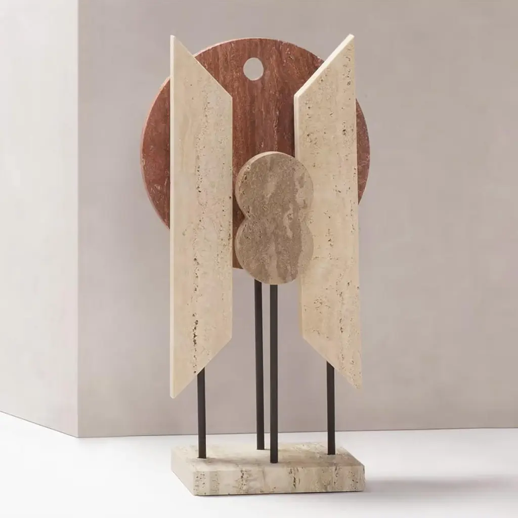 Sculpture Inca 2 Marble made with carved and polished marble, pole in solid bronze.