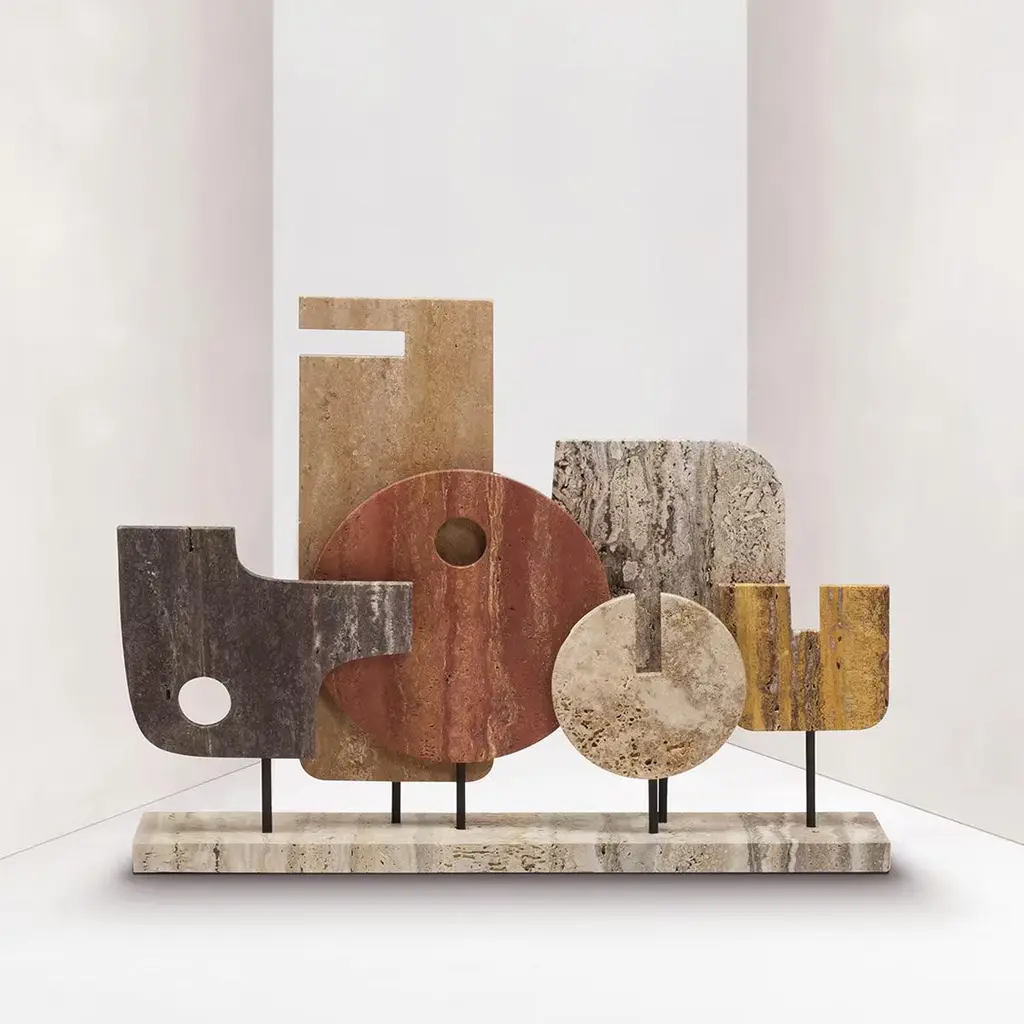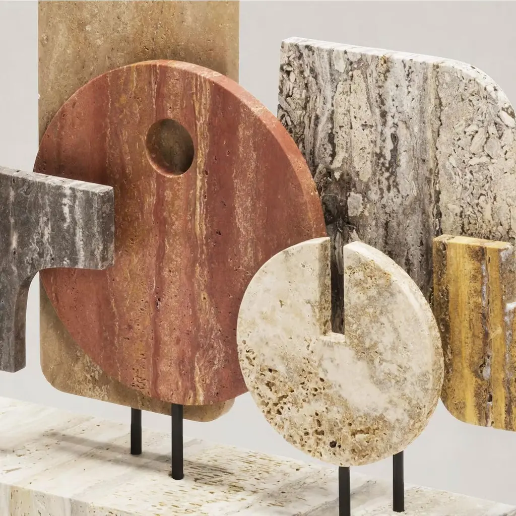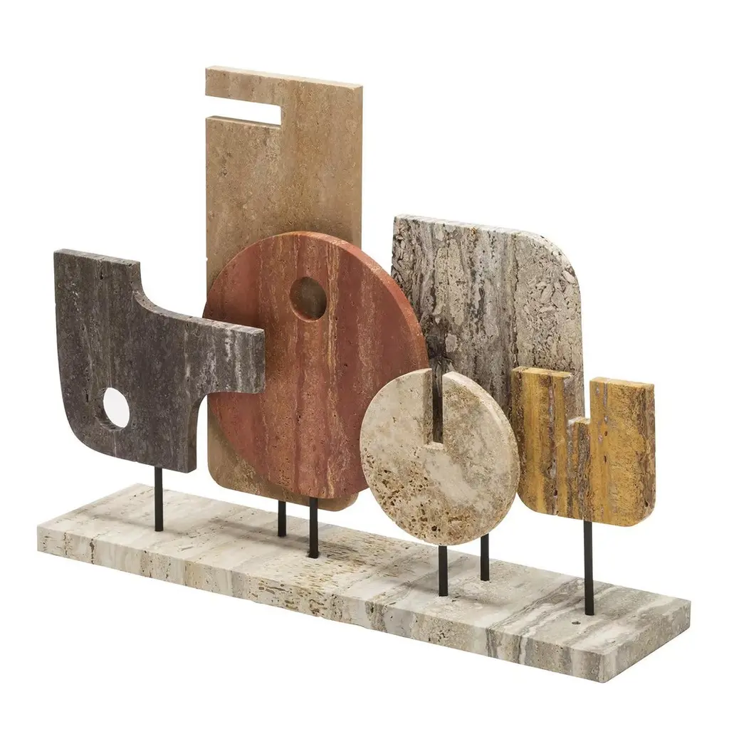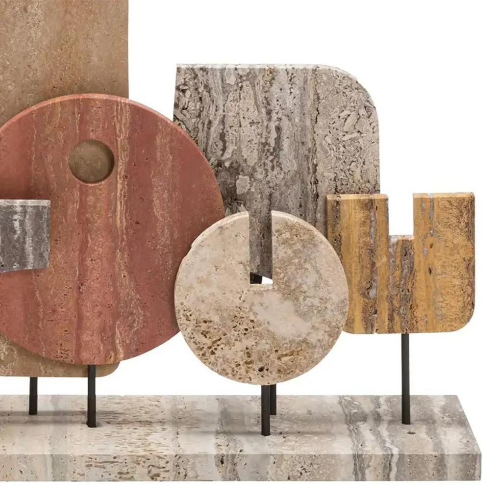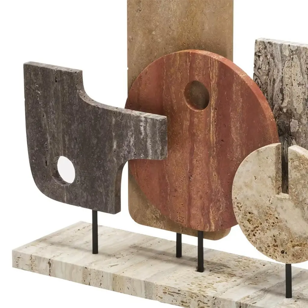 Sculpture Inca 6 Marble made with carved and polished marble, pole in solid bronze.