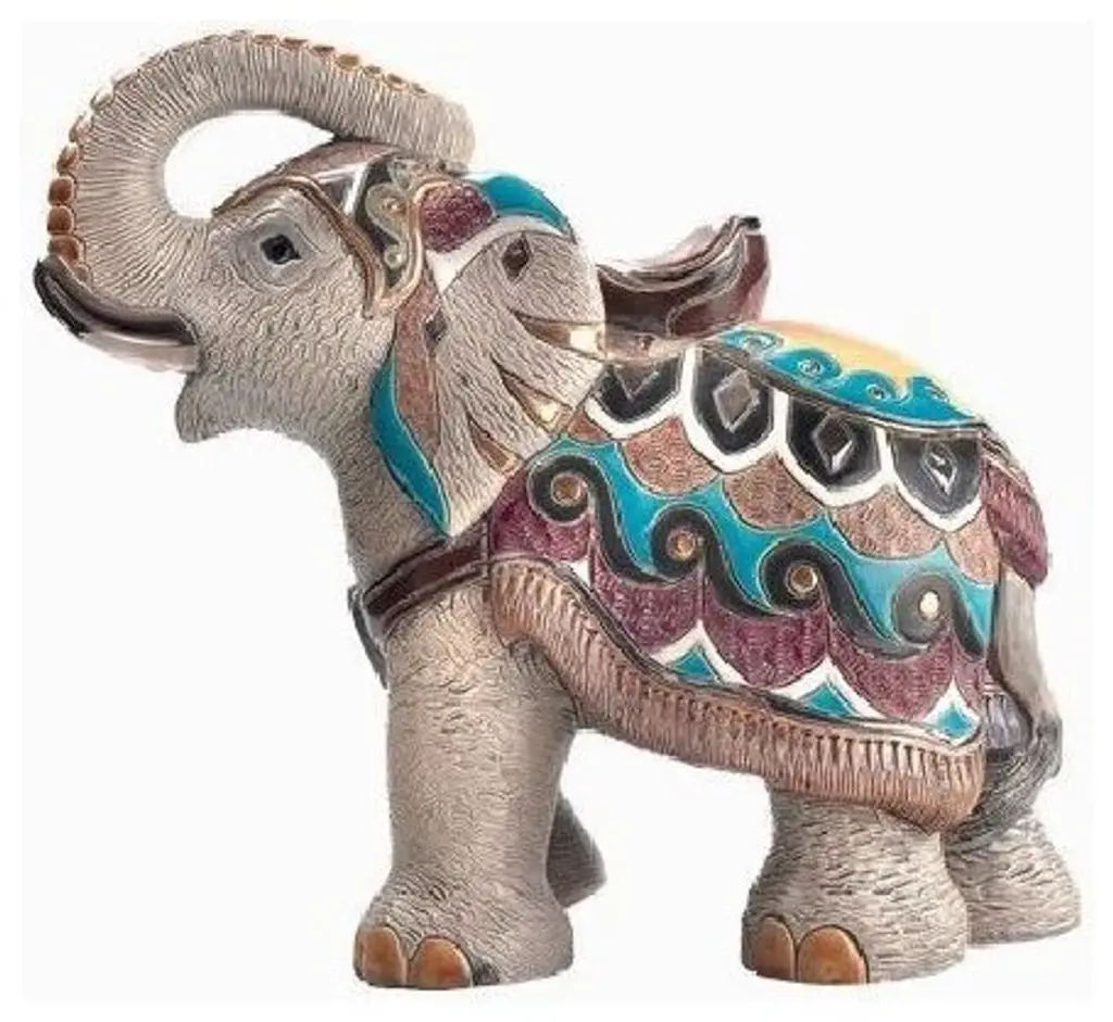 Piece launched in 2009Limited Edition of 2000Hand-carved ceramic elephant sculpture.. each piece uniqueAccented with rich gold trimHand-enameled colors individually fired for each hueWeight is approx. 6 lbs. Artistic style influenced by Dali, Picasso, and Miro