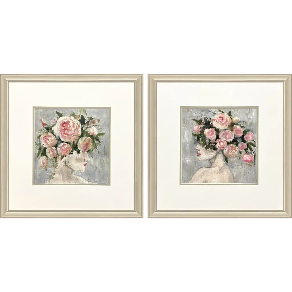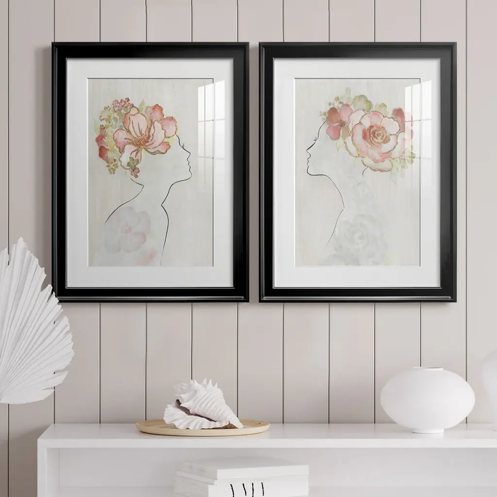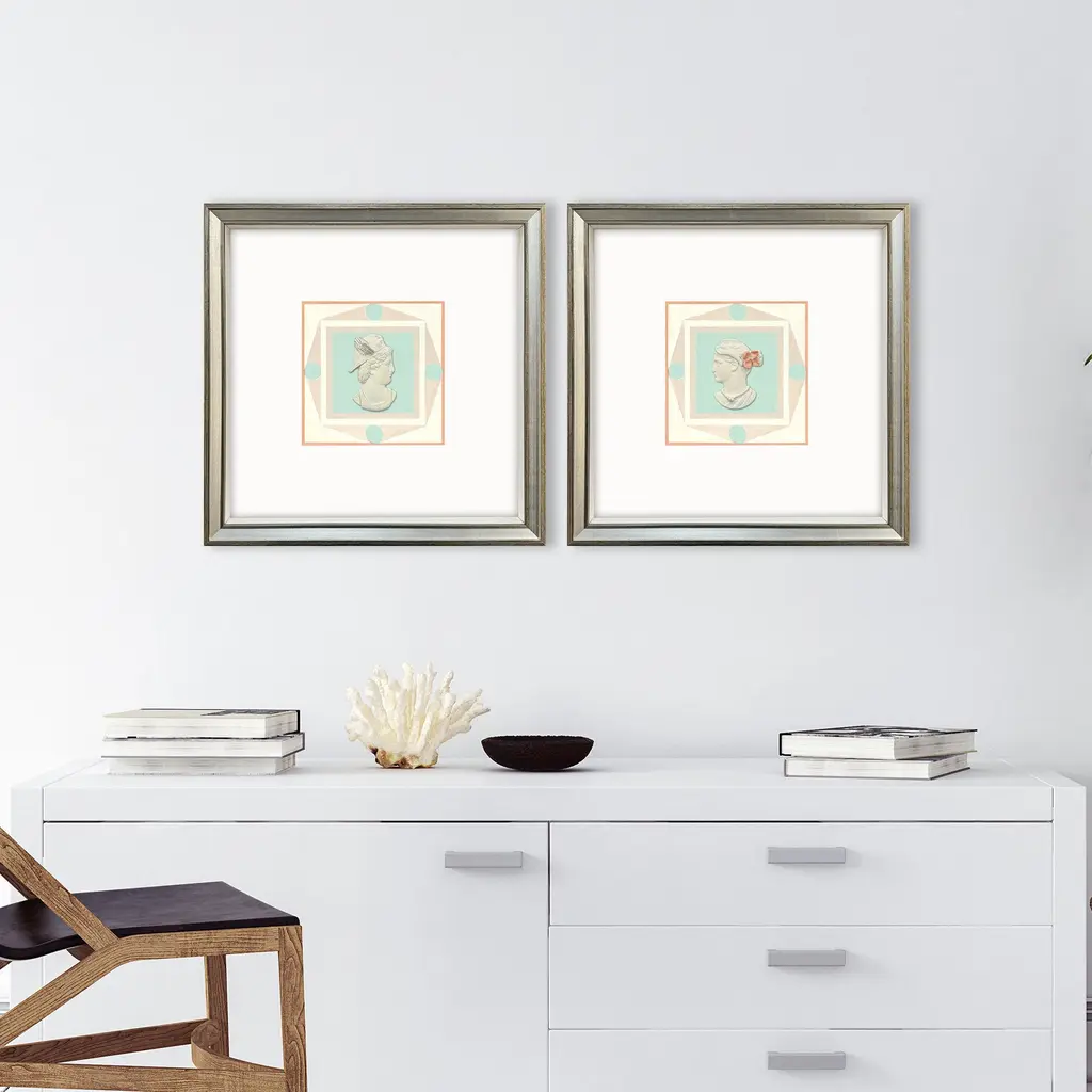 Intaglio Busts Teal And Beige And Multi And Orange Framed Art
