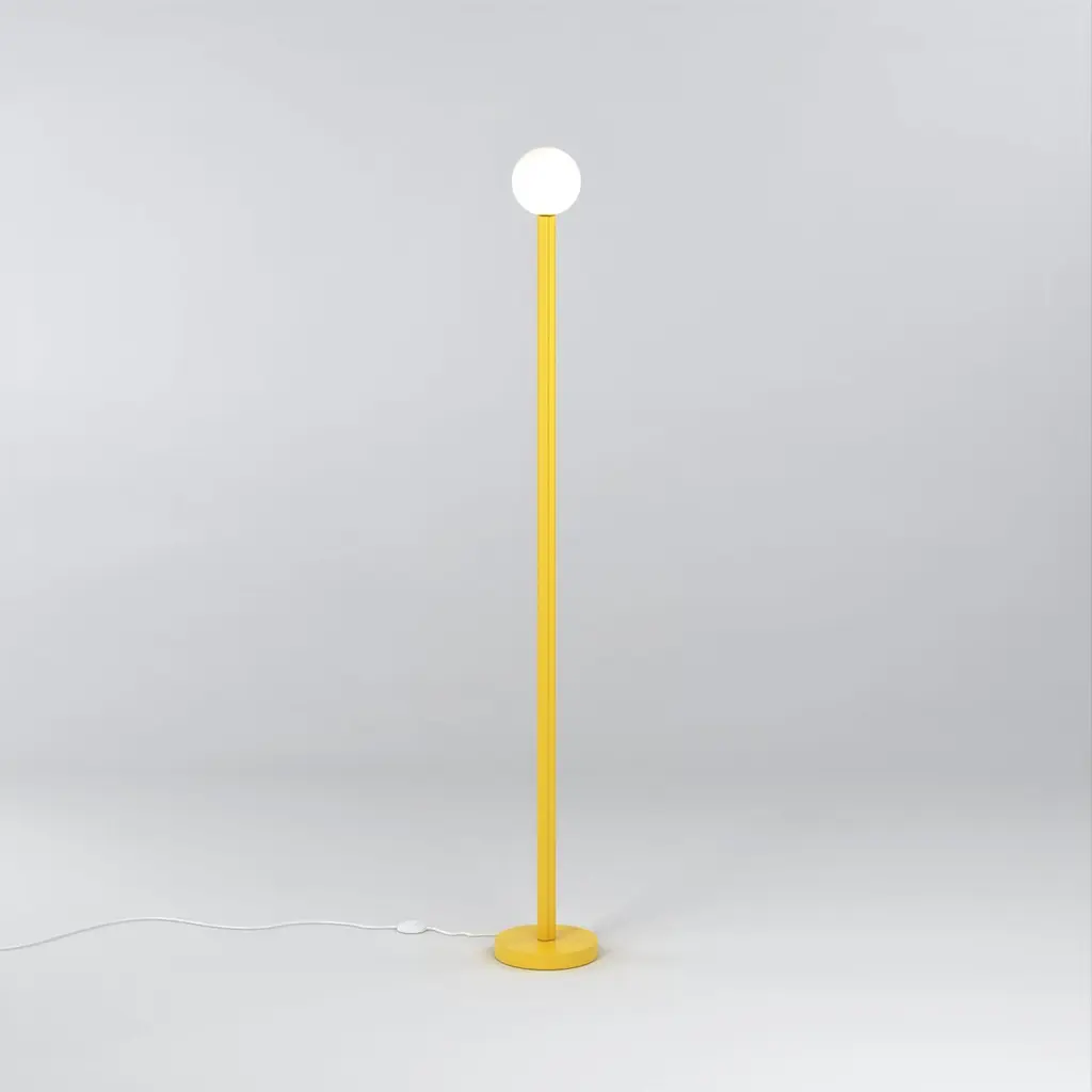 Intense Yellow Profiles Floor Light by Atelier AretiDimensions: D 20 x H 156.7 cm.Materials: Powder-coated metal, white glass.Available in other colors. Please contact us.All our lamps can be wired according to each country. If sold to the USA it will be wired for the USA for instance.Atelier Areti was established by sisters Gwendolyn and Guillane Kerschbaumer.Gwendolyn and Guillane’s background is in visual arts - drawing and sculpture, architecture, and design. Their work reflects this interest in both the object and space, exploring and existing between the sculptural quality of the object and its spatial dynamic.‘We strive to develop something new and beautiful through our work. We are driven by curiosity and the desire to explore works that touch us on a deeper, direct emotional level as well as engage us in a more conscious conceptual way.These artistic ambitions need to be realized and developed in the actual material product. The material realization gives the design it’s place in our daily life. A well done object will be valued for a long time; we aim to create pieces that remain relevant through their beauty, function, and quality.’