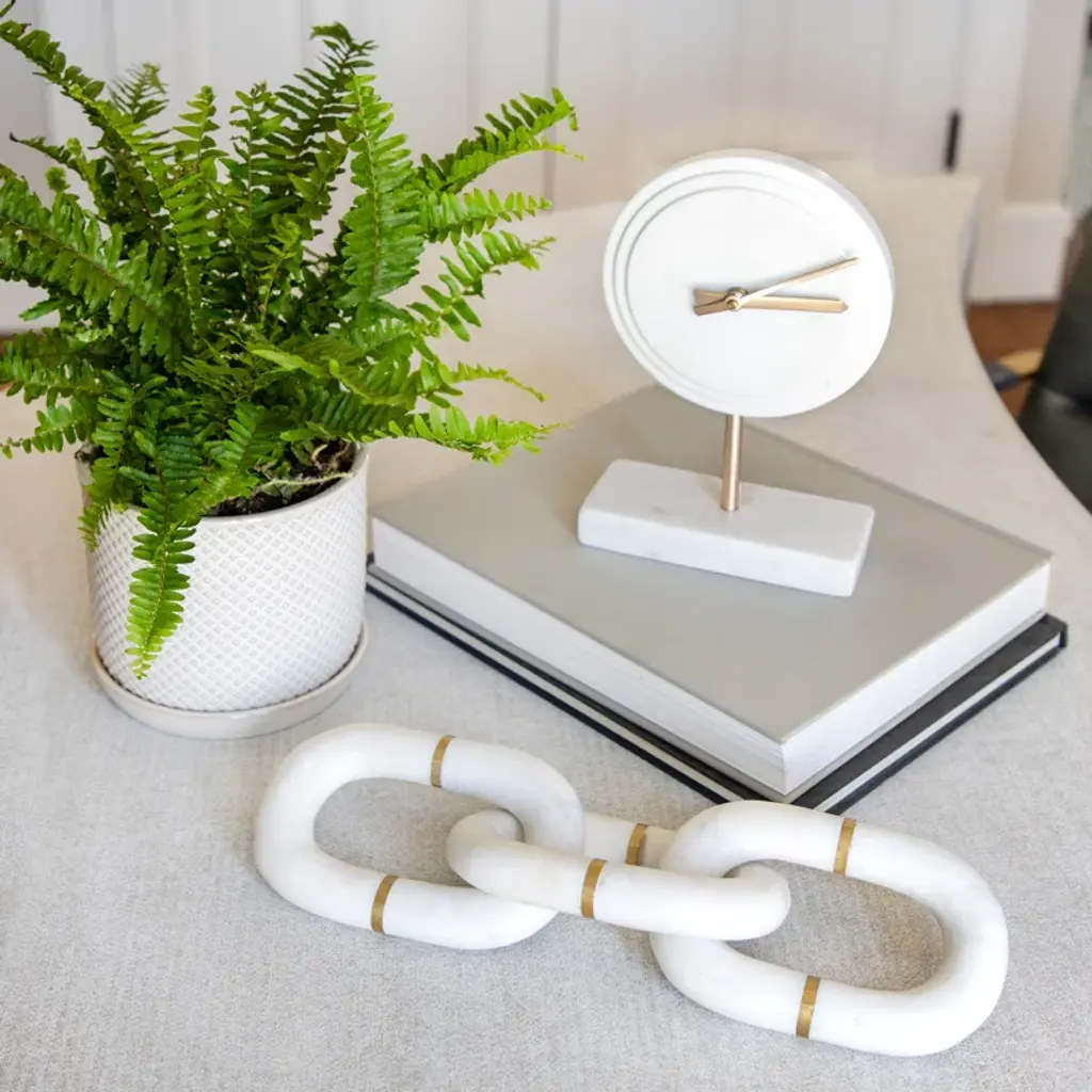 This marble chain link décor piece will bring uniqueness and updated style to any space. This comes in a variety of tones with vibrant accents. Add a touch of sophistication and glam to a room with this stylish piece. Great for all decorating styles.