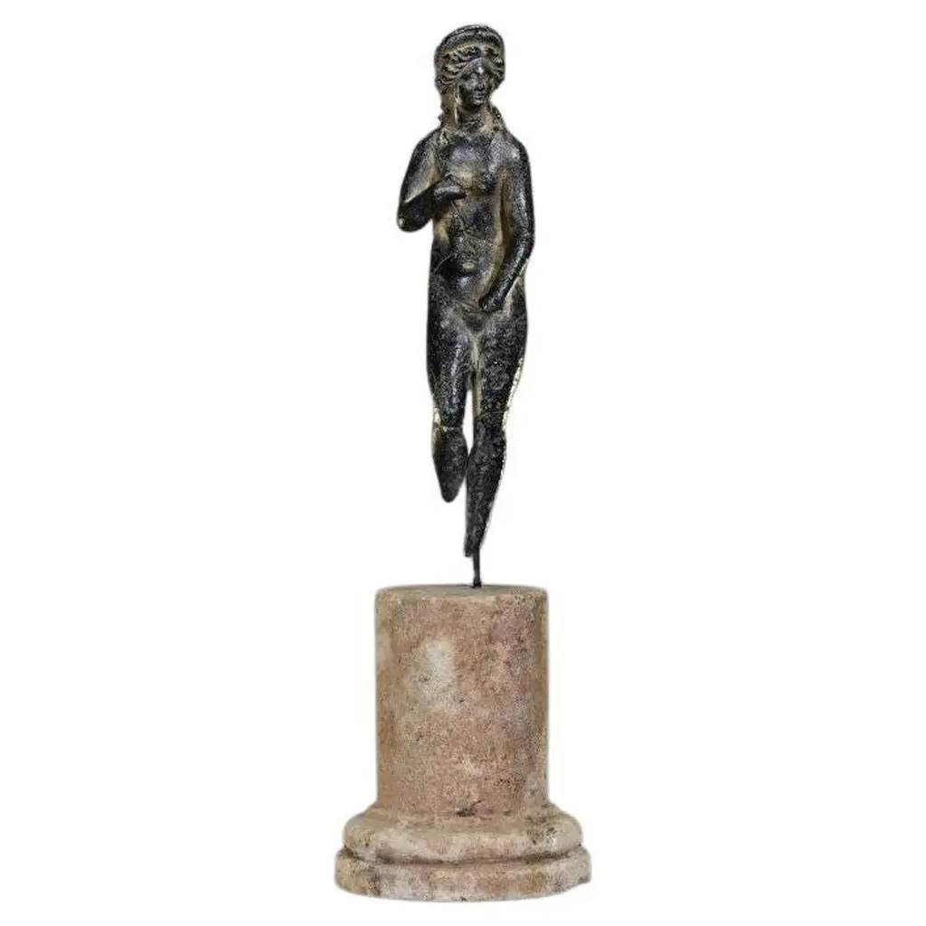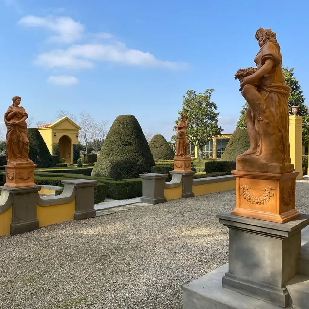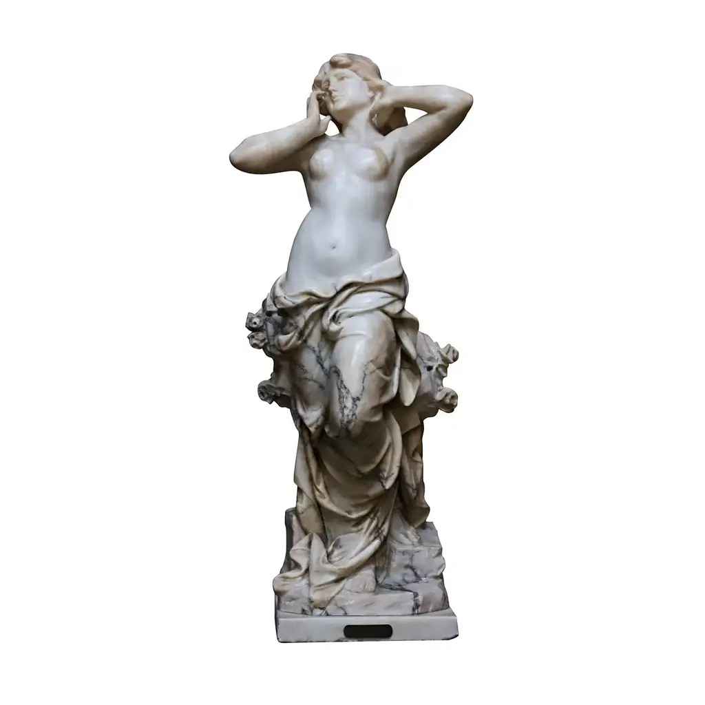 An exquisite celebration of Florentine Renaissance, this stupendous sculpture embodies the glorious allegros of Winter. Depicting an elegant lady protecting herself with heavy clothes from the cold weather, it is superbly handcrafted of ceramic rendered in a natural and charming earthenware shade. It will make a bold and iconic accent to a classic or mid-century decor style.