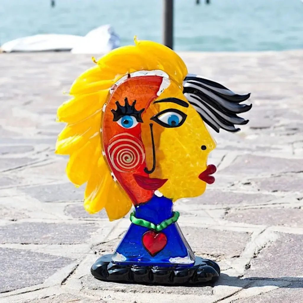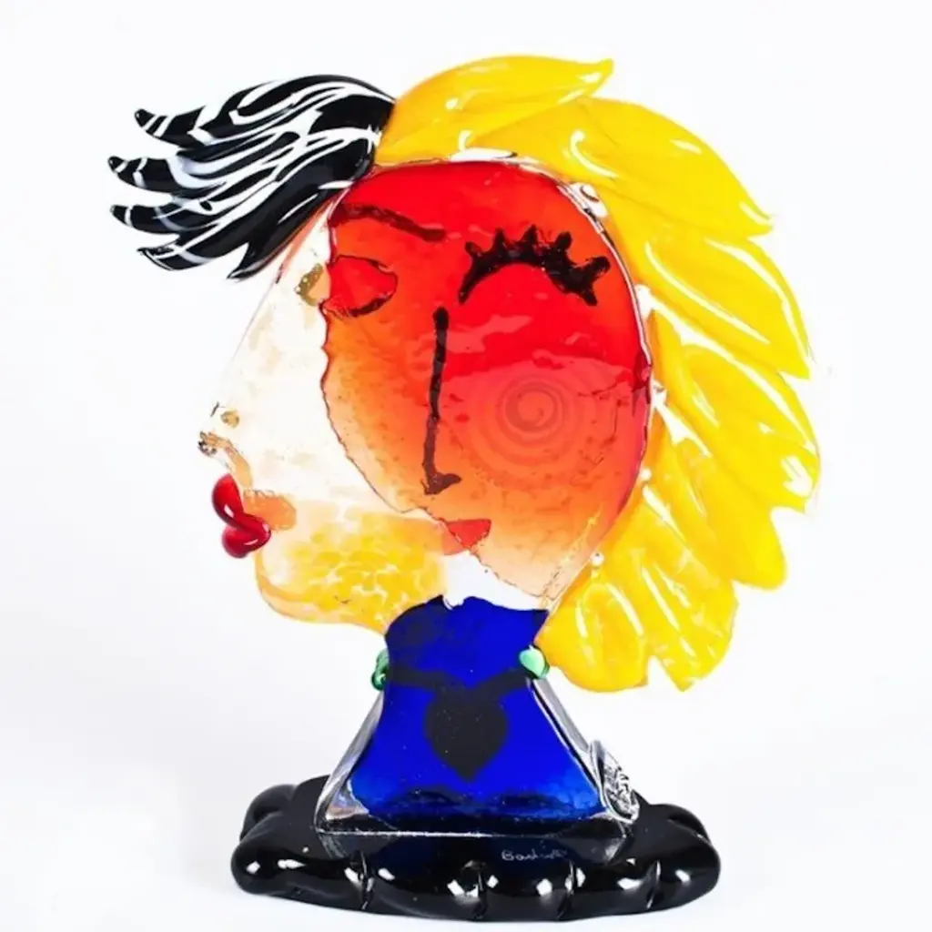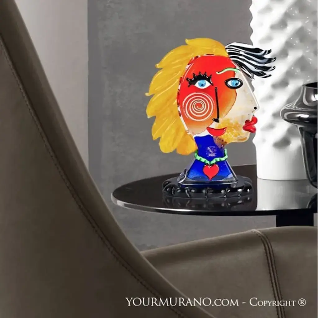 IRIS is a beautiful Murano glass figure enriched with colorful details. A unique piece of furniture for your home or a great gift idea! These multicolored Venetian glass sculptures take inspiration from the style of Picasso and mix it with the traditional glass processing techniques of Murano. A perfect combination of modern cubist design and ancient tradition of Murano glassblowing in a single inimitable glass object to add a touch of color and express all your artistic flair through your home décor. Use it as a precious gift to impress someone special or jealously keep it to yourself! All products are handcrafted and prime production quality. Insubstantial variations in shape, size, colour, small imperfections and/or tiny air bubbles in the glass are not considered defects; they are inevitable and are typical of manual production of the glass and characterize handcrafted production.