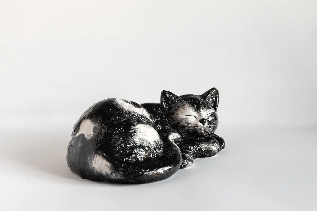 This Italian porcelain sculpture is part of Grand Tour by Vito Nesta. Made of Capodimonte porcelain with a glossy finish, this sculpture is shaped like a sleeping cat and was inspired by Romolo, Vito's cat.