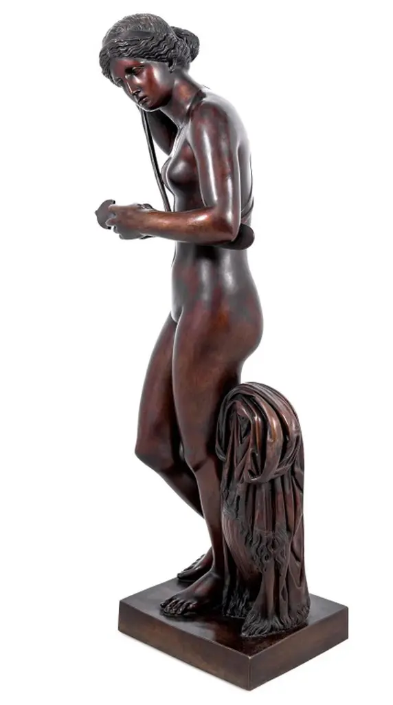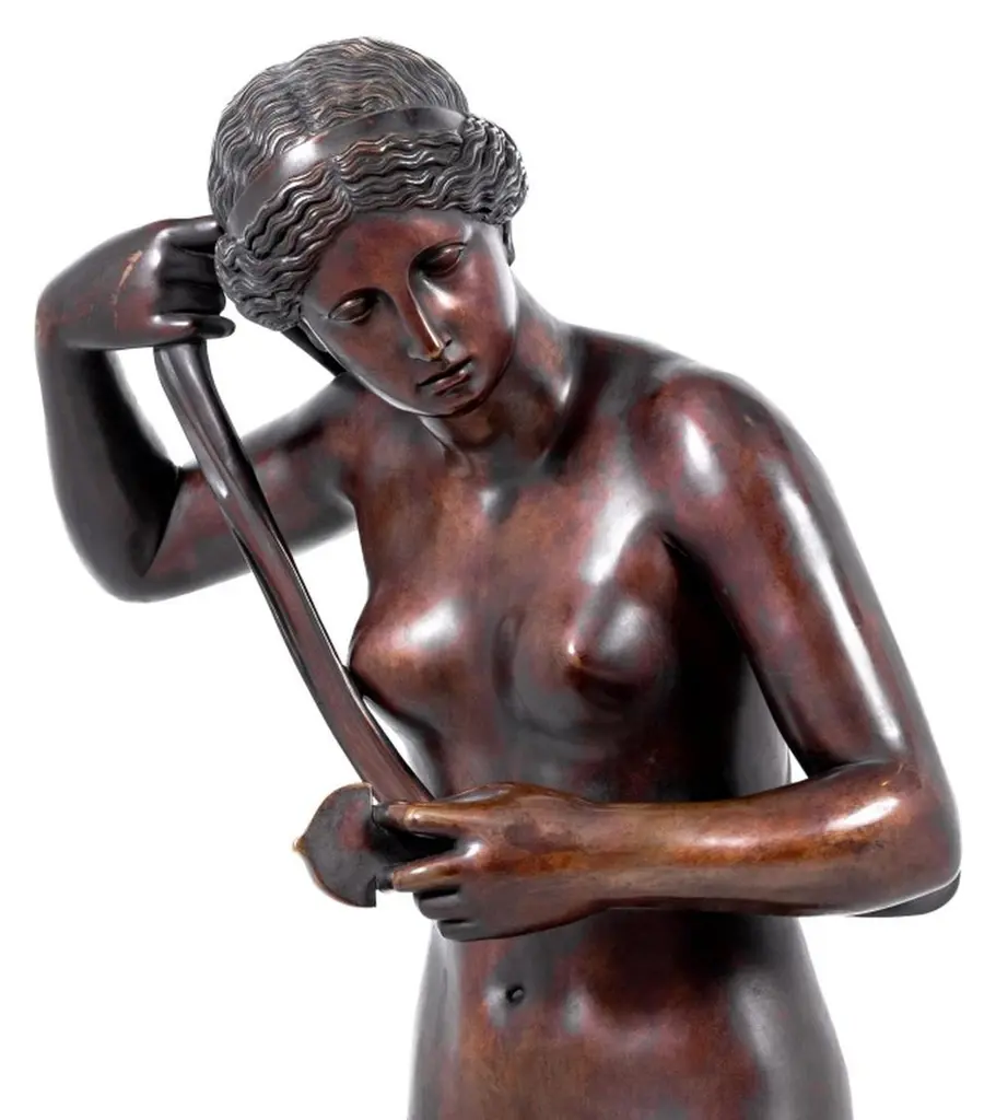 Italian "Venus with Sword of Mars" Patinated Bronze Sculpture, possibly cast by Chiurazzi, Naples, late 19th century. 50" H x 21" W x 12.5" D. Note: A version of this bronze is in the garden of the Ringling Museum of Art, Sarasota, Florida.