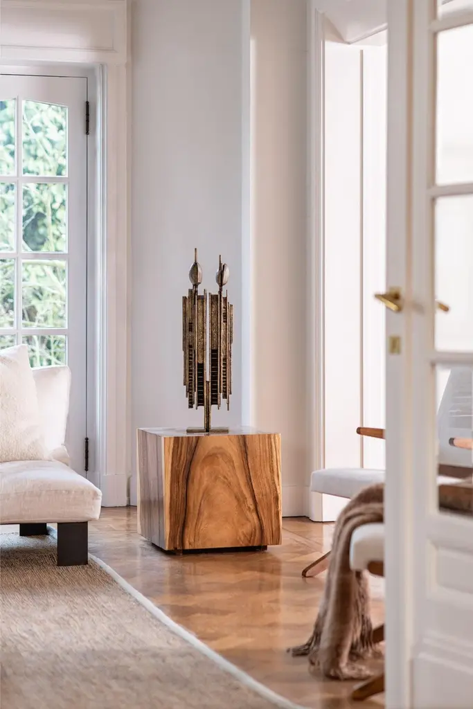 Iuxta Bronze Sculpture by Gardeco ObjectsLimited Edition Of 75 Pieces.Designed by Guy Buseyne.Dimensions: D 18 x W 22 x H 77 cm.Materials: Bronze.Iuxta – a wonderful name for an equally wonderful sculpture. With this handmade limited edition work of art, sculptor Guy Buseyne expresses the importance of being close to those dear to you.Gardeco stands for anonymous, but authentic and pared-down art-decoration objects.The company was founded in September 1999 with only one objective: bringing affordable pieces of art to the broader public. Gardeco is a Belgian-based company, offering handcrafted pieces from around the world, selling in stores throughout the world. Our goal is to introduce well-talented designers and artists to a broader audience via exclusive shops, design stores, museum shops, art galleries, architects, and interior designers. Gardeco could be considered an art publisher that represents artists and craftsmen. It’s where new ideas in art meet high-end decoration.All of our products are produced by skilled craftsmen and artisans. A handcrafted and low technology-based production brings on a variation in all shapes and colours, and thereby a strong sense of authenticity to all of our products. Each mould in which our products are made, is made by hand, as well as the final refining details of each product.