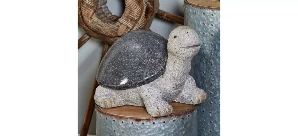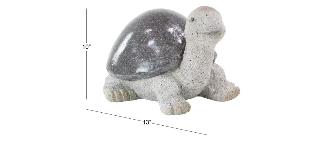 Showing the tranquility of nature, this Ivy Collection KunRong Garden Sculpture features light and dark contrasting colors; it is also designed with carved facial details and turtle legs. This speckled turtle figurine will definitely add an aesthetic twist to homes and gardens with a traditional design. Let it provide a sense of calm to any atmosphere by displaying it on top of a shelf, countertop, mantel, or an accent table. Made of polystone, this accent decor piece is truly unique and remarkable. Suitable for indoor and outdoor use.
