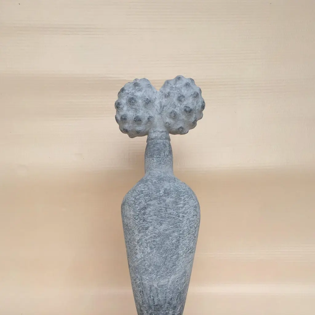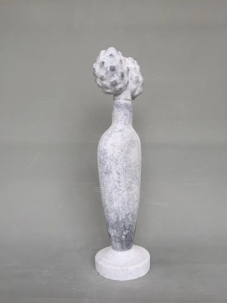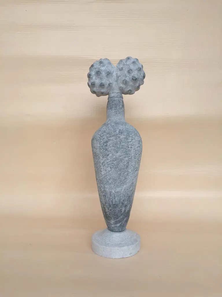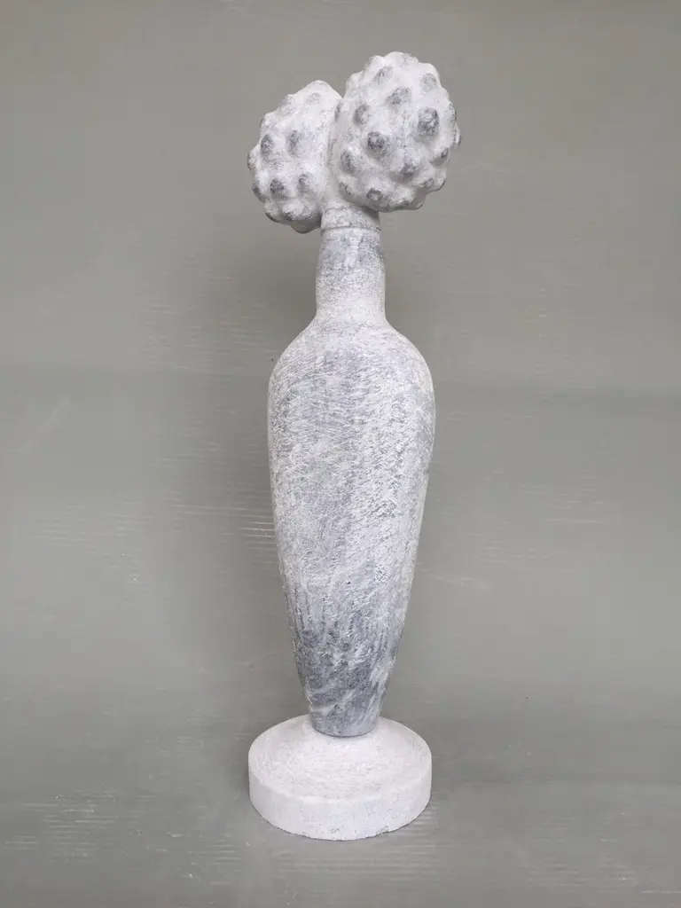 Janus, 2021, marble sculpture by Tom von Kaenel.Dimensions: W 14 x H 48 cm.Materials: naxian marble.All the artworks of Tom von Kaenel are unique, handcrafted by himself.The stones all come from the surrounding marble quarries of the island. The naxian marble is of white, grey or yellow-brown color, its structure is crystalline. No measuring instruments other than compasses and scales are used in the production of an object. The eye decides on the finalshape. The crystalline surfaces are shimmering. This gives the object a unique liveliness.Tom von Kaenel, sculptor and painter, was born in Switzerland in 1961. Already in his earlychildhood he was deeply devoted to art. His desire to bring beauty to the world is Tom vonKaenel’s inspiration, drive and source for the creation of his works.Already during his training as a technical draughtsman and later as a teacher of pictorial design, he devoted himself to painting and three-dimensional work. Tom von Kaenel has exhibited his work in various solo and group exhibitions. For seven years he was represented by Galerie Ute Barth in Zurich.Today Tom von Kaenel lives and works on the island of Naxos. Everything in his environment inspires and shapes his work. He creates objects and sculptures out of Naxian marble in craftsmanship liveliness and timeless beauty.