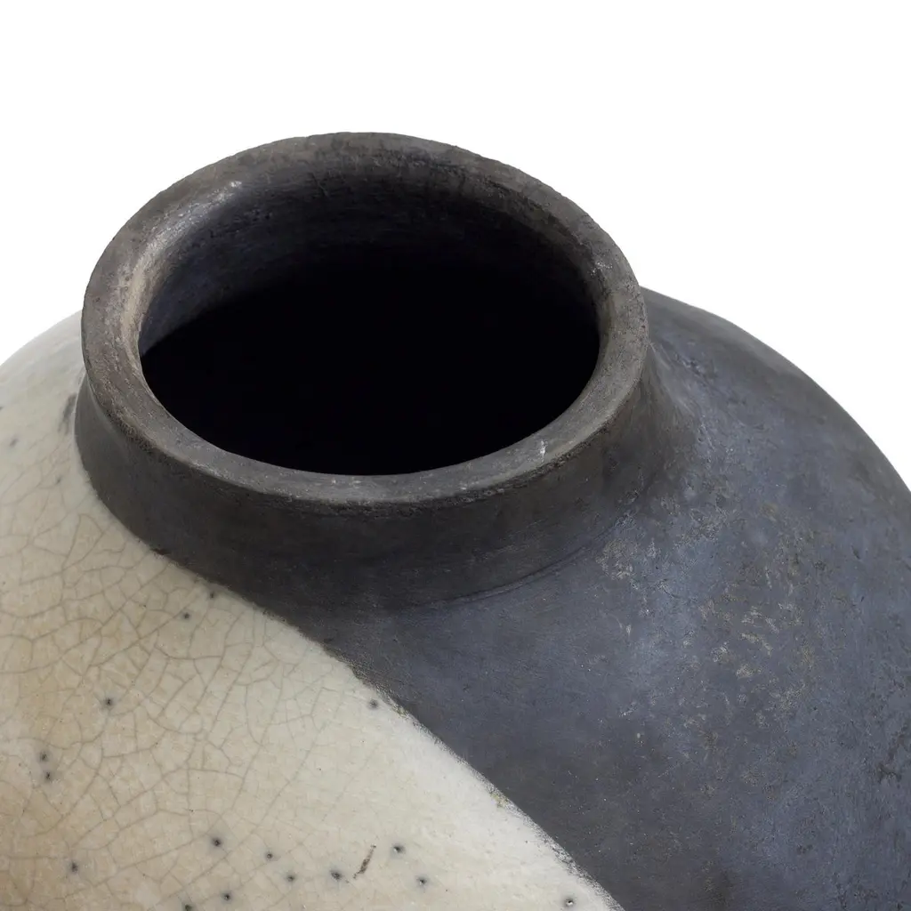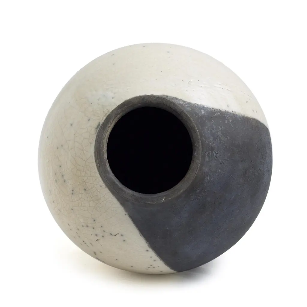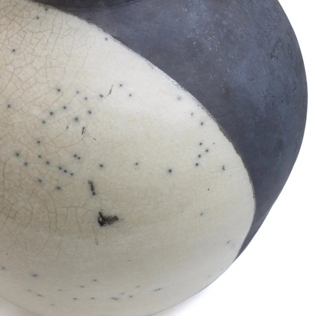 Japanese Modern Minimalist Laab Shadow Sculpture Raku Ceramic White Black Crakle