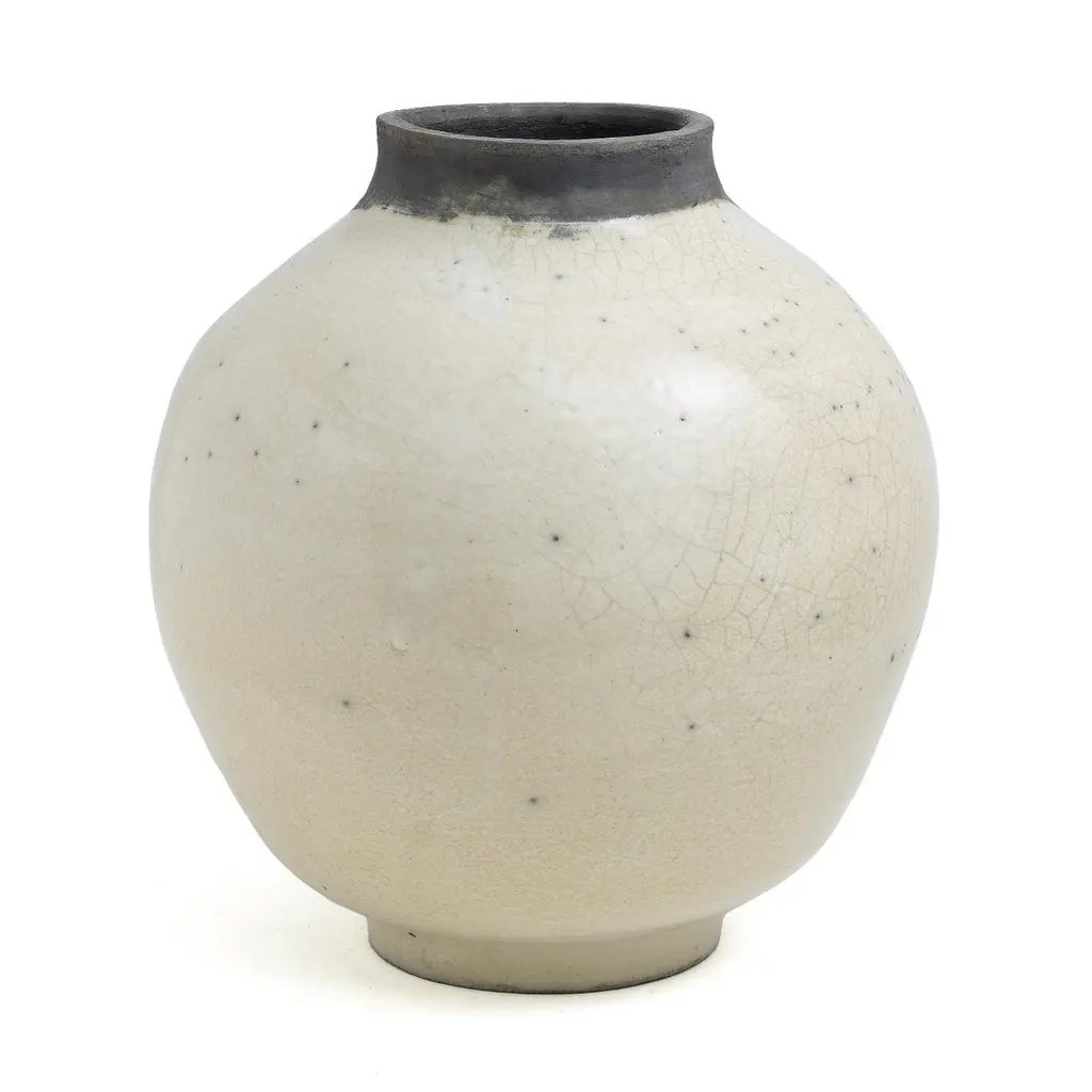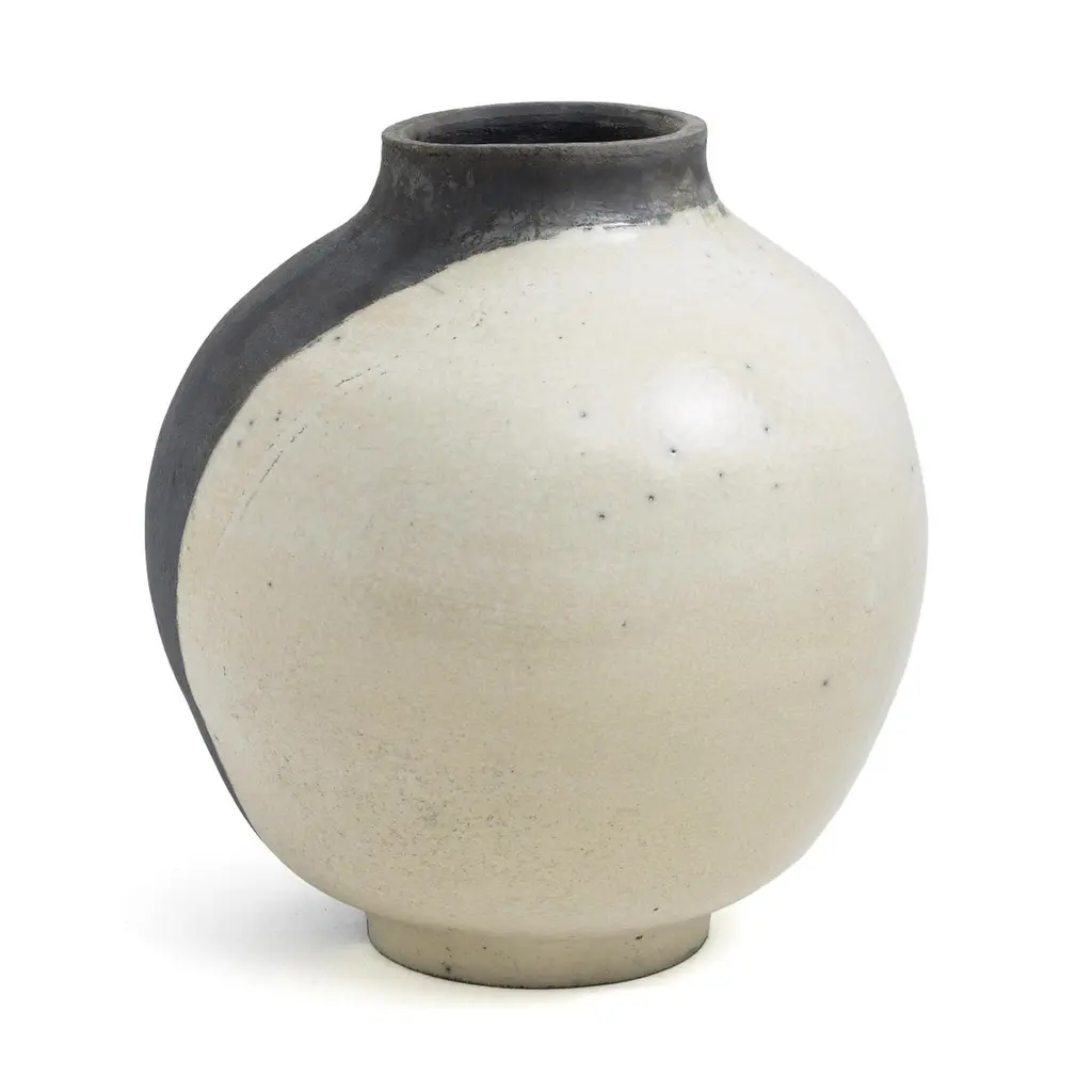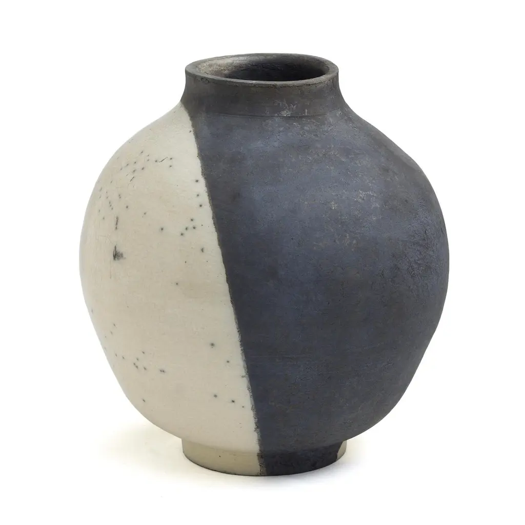 Japanese Modern Minimalist Laab Shadow Sculpture Raku Ceramic White Black Crakle