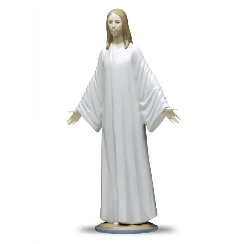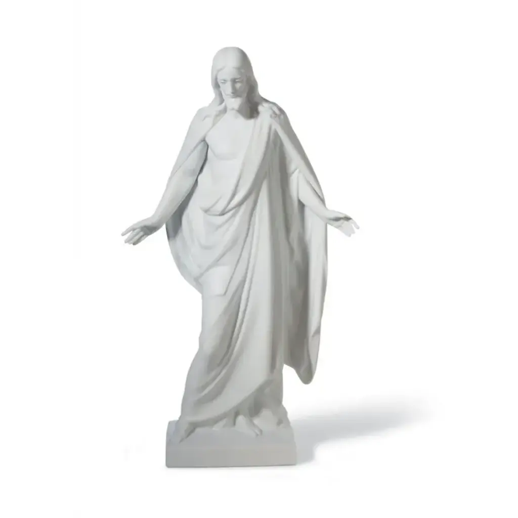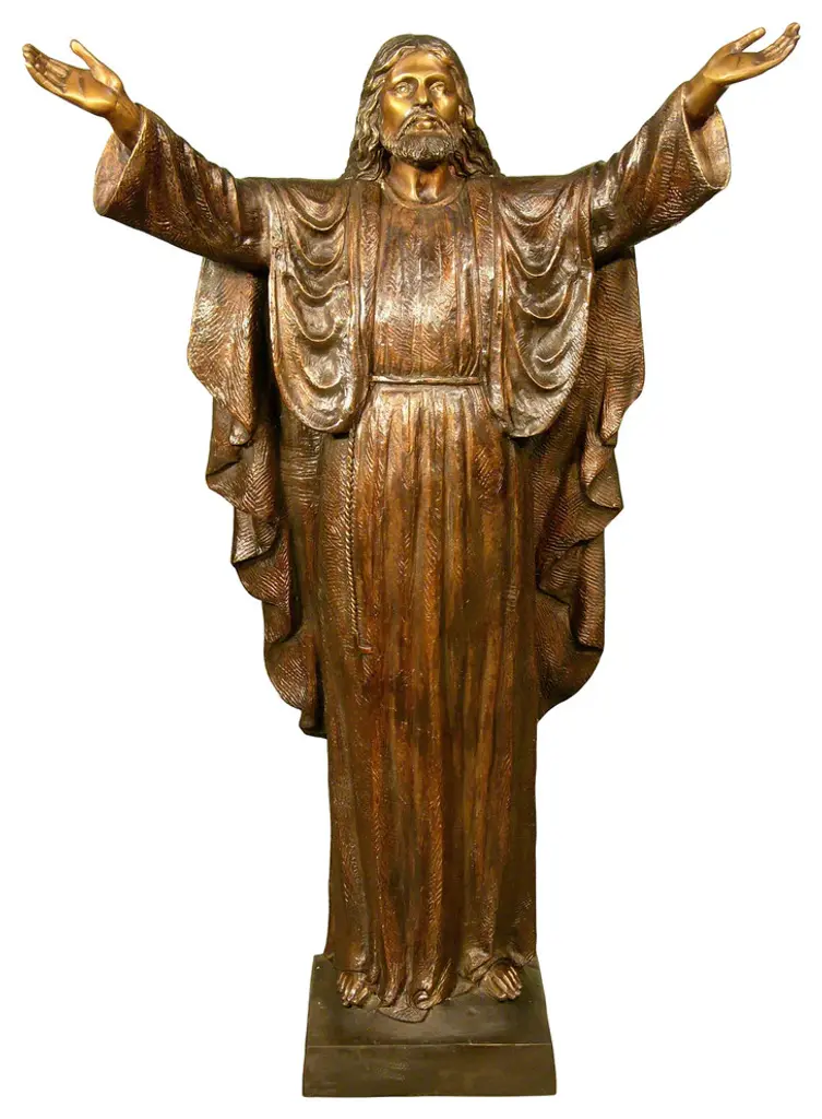 The "Jesus with the Sacred Heart" sculpture depicts Jesus Christ teaching his followers. Finished in bronze patina with a marble base, the sculpture is a wonderful rendition of Christian faith.