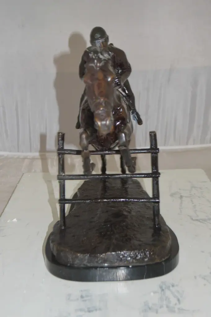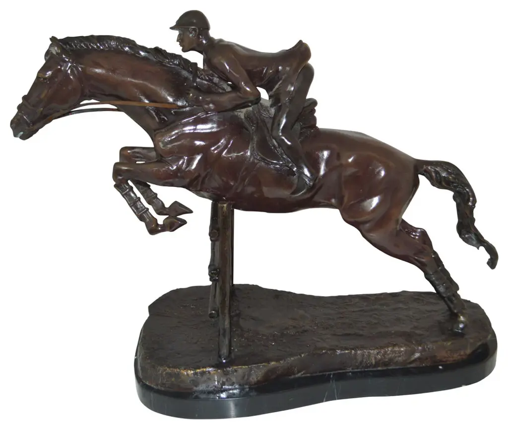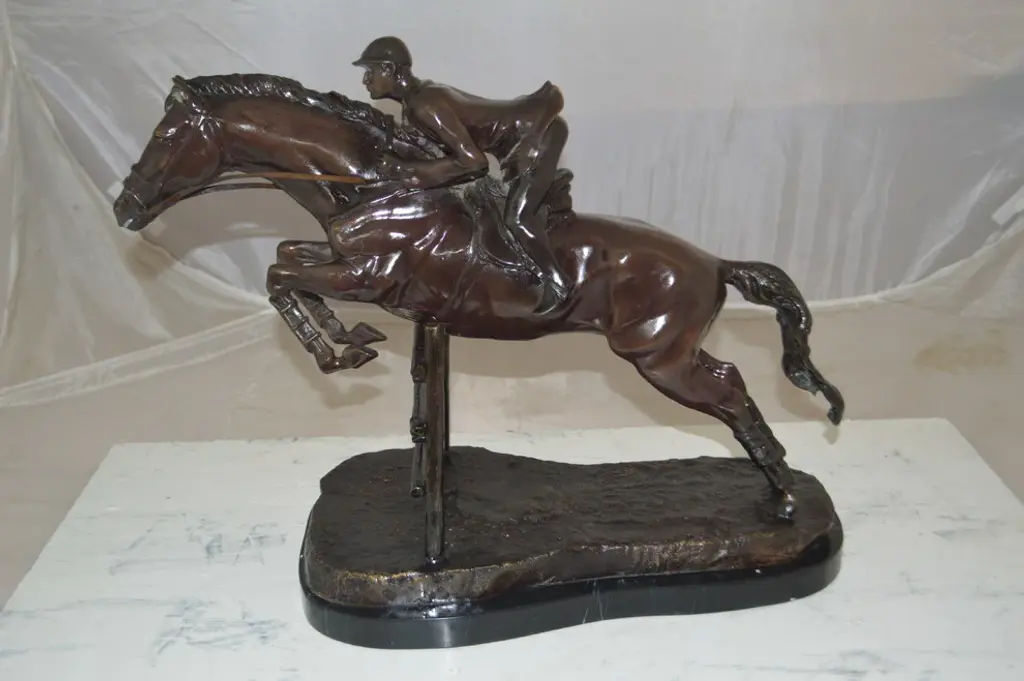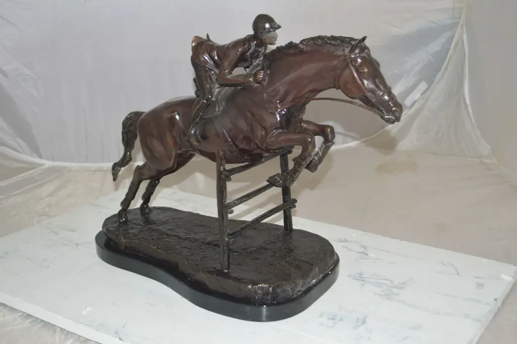 Jockey With Horse Jumping Over Hurdle Bronze Statue Medium 23"l X 10"w X 16"h
