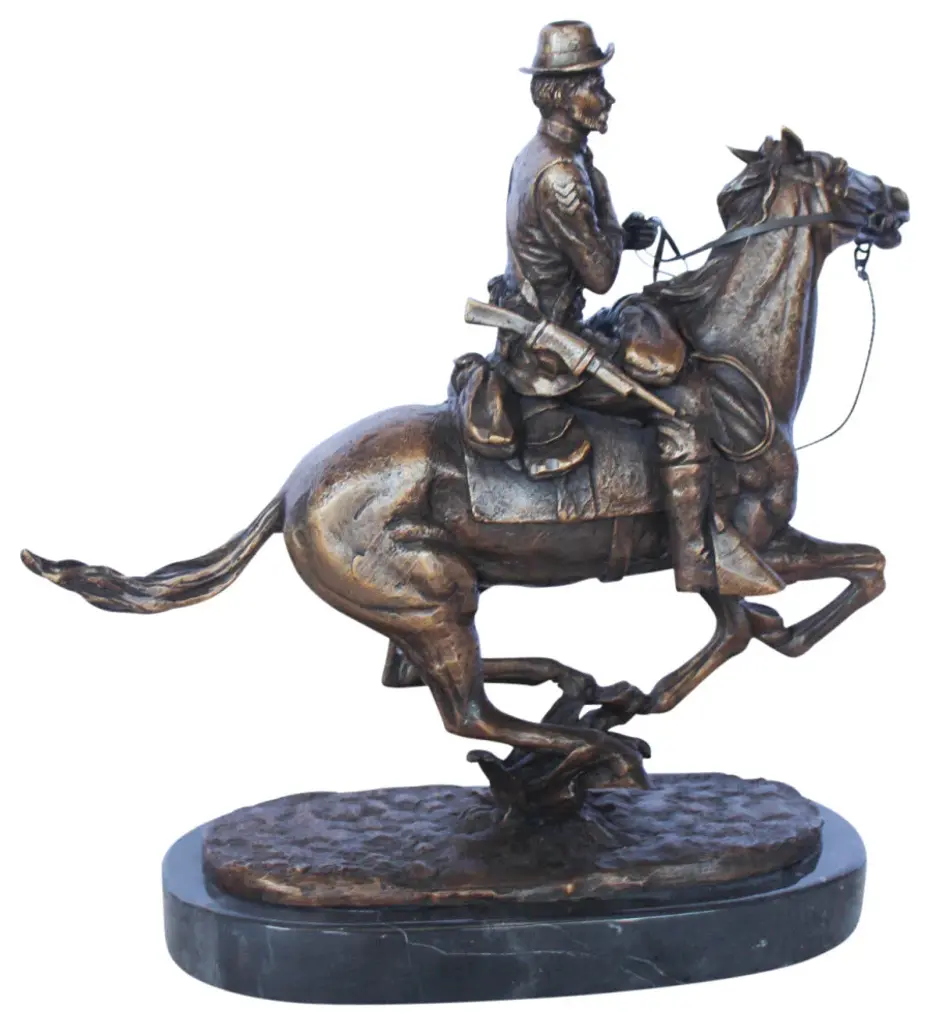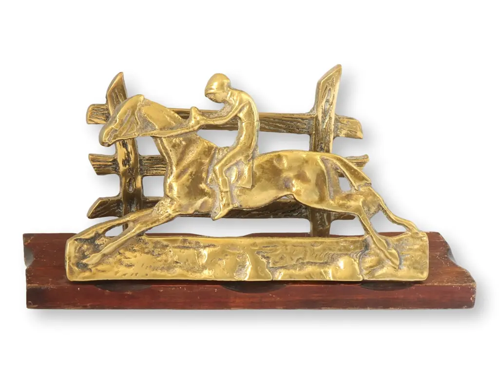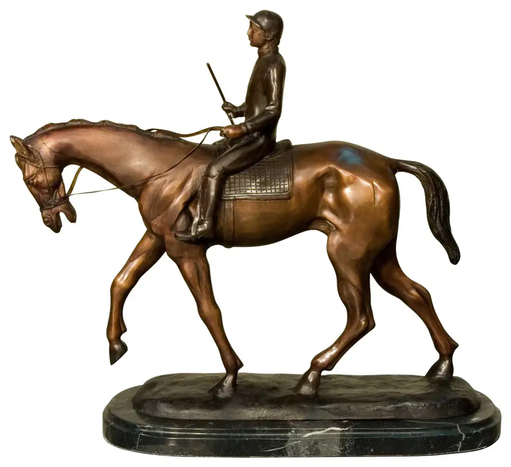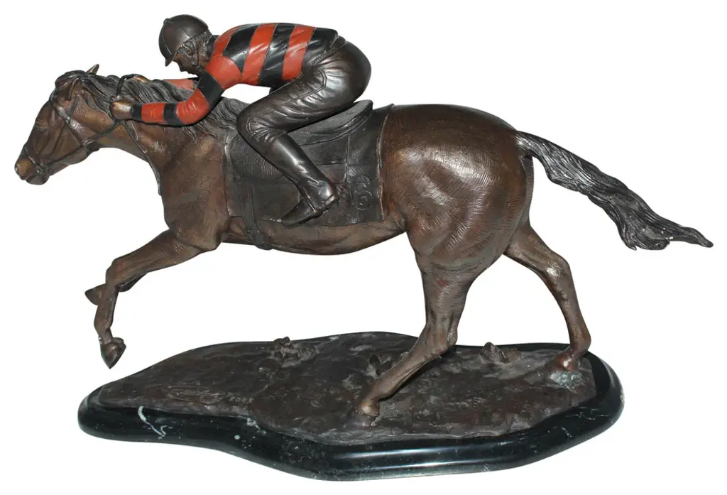 Jockey With Horse Jumping Over Hurdle Bronze Statue Medium 23"l X 10"w X 16"h