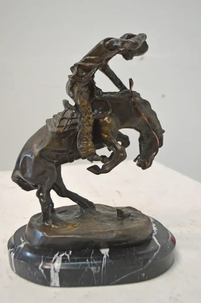 The mediume size bronze Table Top of a jumping horse on a marble base is a handmade sculpture using the lost wax method. The handcrafted technique gives subtle variations in color, finish, size and shape into each part of the statue. Made of solid bronze that will not rust, fade, chip or crack. Can be used indoors or outdoors. Size: 23"L x 10"W x 16"H. Weight is: 36Lb
