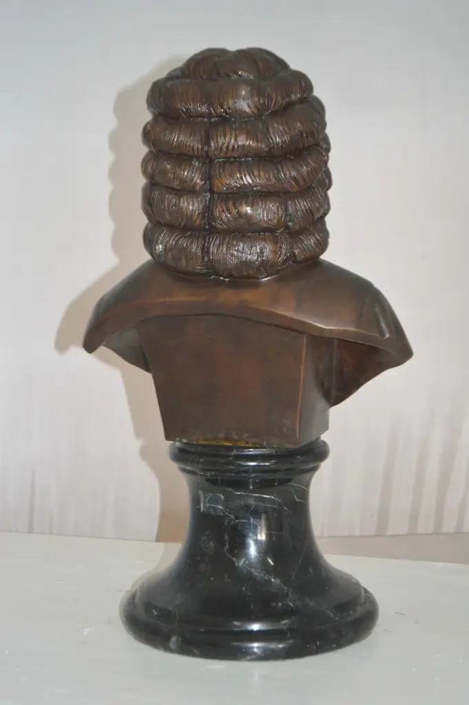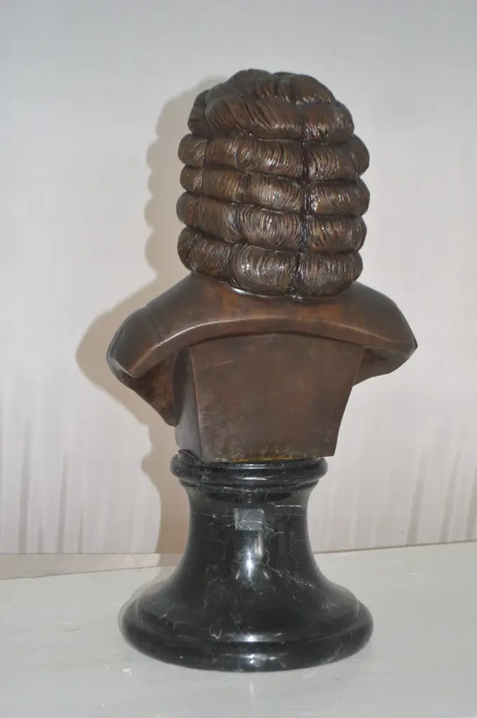 Johann Sebastian Bach was a German composer, organist, harpsichordist, and violist, and his music is revered for its intellectual depth, technical command, and artistic beauty. This bronze statue depicts Johann Sebastian Bach Bust, made of pure bronze. This bronze statue is museum quality replica of Bach was hand-cast in high-quality bronze using the Lost Wax Process of bronze casting over a special stone. This beautiful bronze statue will be a valuable addition to any area of the home, office, patio, or garden. Size: 11"L x 9"W x 20"H. Weight is: 26Lb