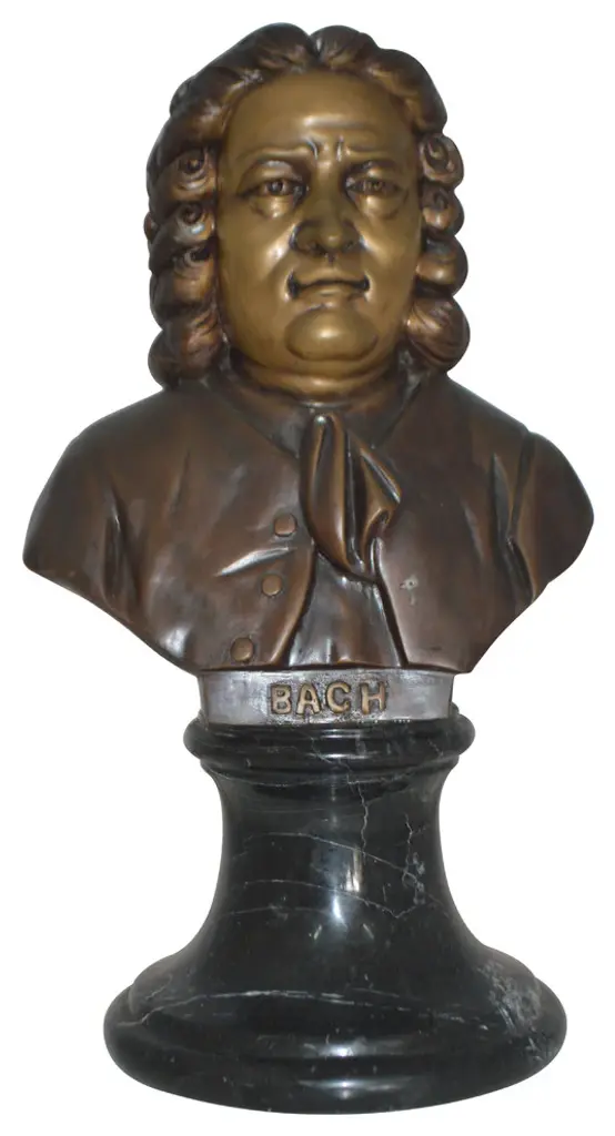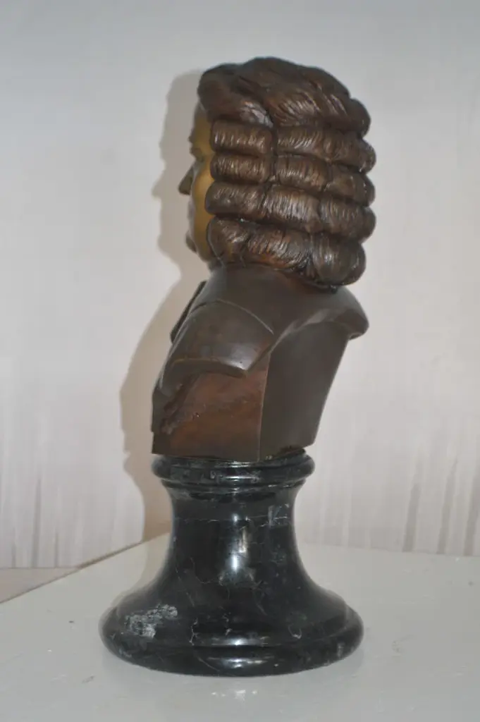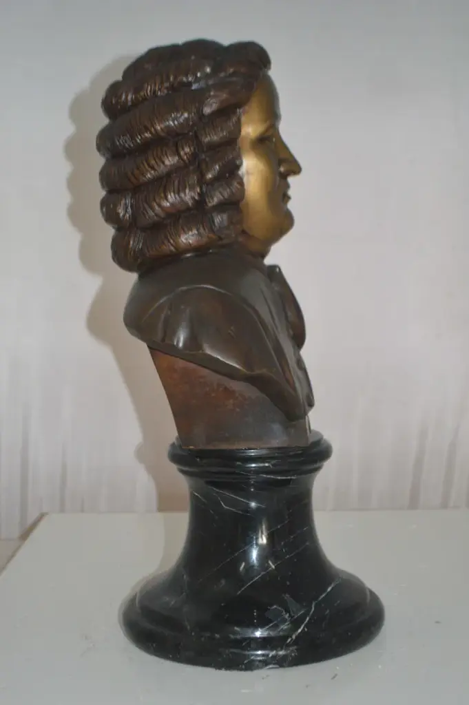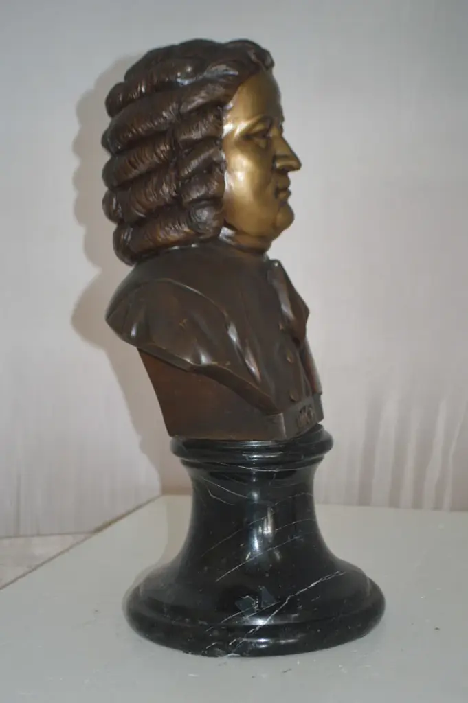 Johann Sebastian Bach Bust Bronze Statue - Size: 11"l X 9"w X 20"h.