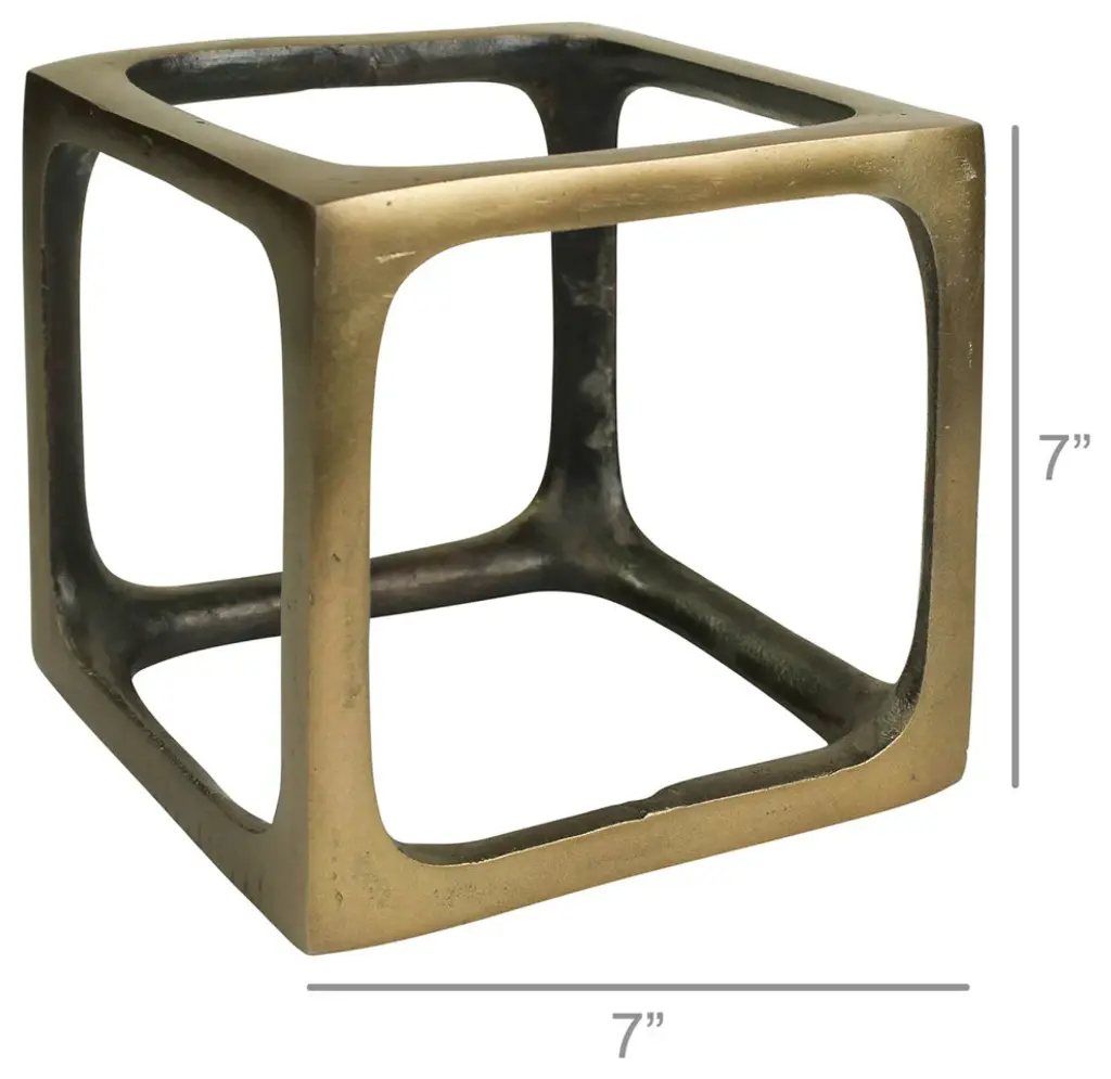 The perfect way to add a touch of contemporary design to your home, this Jumbo Cast Aluminum Square Sculpture will be a great purchase. This piece is made from cast aluminum and has a black and gold finish on it. The square shape is made up of four frames that are attached together, creating a piece that is unique and airy. The open nature of this piece means it will work with any kind of decor you already have in your home and will only elevate the space and not make it look too busy. You can use this decor piece as a stand-alone piece or as bookshelf decor with other similar pieces. 6.5" H x 6.5" W x 7" D