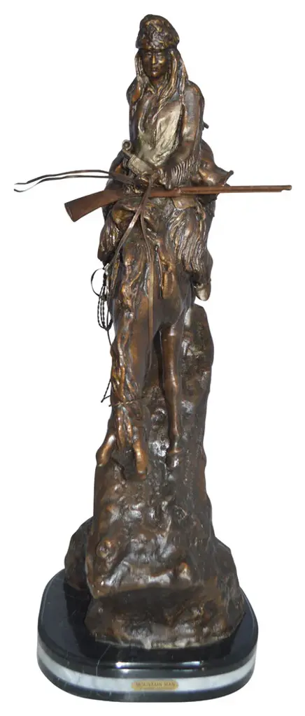 Jumbo Mountain Man By Remington Bronze Statue - Size: 13"l X 13"w X 37"h.
