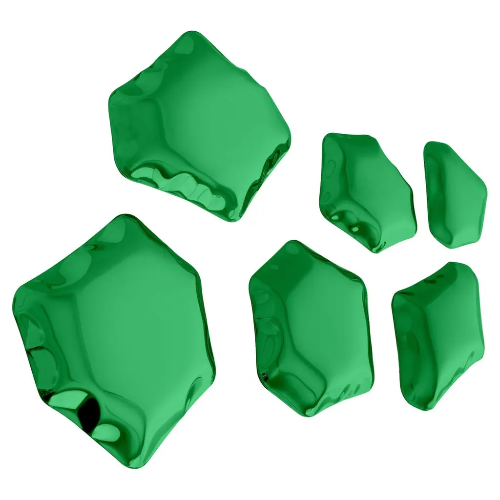 Kamyki is a series of wall hangers or decoration in unique but repeatable shapes. Kamyki are made of stainless steel polished to high gloss which gives them a very adorable look when mounted together to the wall to create a special pattern or design. They are often used to decorate the reception entrances, halls or bare and minimalistically structured walls inside or outside of the building. They have different diameters from 7 to 20 cm which can be easily adjusted according to the customer´s needs.Kamyki 6 set is available in carbon steel and stainless steel with the following finish options;Carbon steel:Cosmic blueStainless steel:PolishedEmeraldSapphireFlamed goldAbout the artist/ designer:Oskar Zieta - an architect, designer, artist and innovator. Born in 1975, after he graduated architecture at Szczecin University of Technology in 2000, he has got a scholarship at ETH Zurich. Over the course of 2 years of postgraduate studies he developed skills in parametric design and modern manufacturing technologies finalized with PhD graduation. Currently he runs the department of Industrial Design at School of Form. Laureate of many prestigious awards in design and technology. Inventor of FiDU - inner pressure metal forming technology - the keystone to Zieta Collection, Zieta Out of Ordinary as well as large scale sculptures like NAWA on Daliowa Island in Wroclaw and WIR in Galeria Pólnocna in Wroclaw.Ambassador of Warsaw Home & Contract Fair. Oskar Zieta has been awarded the AUDI - Mentor-Price 2011, the Red Dot Award 2008, DMY Award for Innovation in production process 2008, the YDMI 2008, the German Design Council Prize 2009, the Forum Aid Awards 2009, Technology Award Materialica 2009, MUST HAVE Design Lódz 2011 and was nominated to Mies Van Der Rohe Award 2019, the Schweizer Design Preis 2009 and the Dobry Wzór, 2009. His designs carved out their way into numerous prestigious collections including Centre Pompidou in Paris, the Pinakothek der Moderne in Munich, Zurich Design Museum and the Baden State Museum In Karlsruhe.Oskar Zieta is a CEO of Zieta Studio established in 2010 in Wroclaw. The company is an interdisciplinary team of architects, designers, engineers and technologists as well as production line and Industrial implementation workers. Specialists in many fields are permanent collaborators of Zieta Studio - psychologists, biologists, scientists and many others. FiDU Innovation Lab develops its own, innovative technologies of stabilizing sheet metal, i.e. FiDU and 3+ and their application to modern architecture, engineering and design.