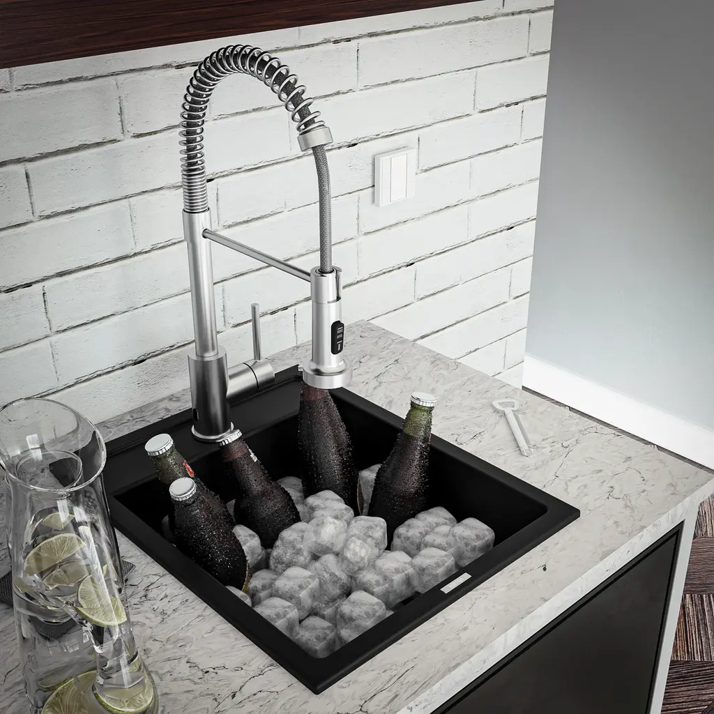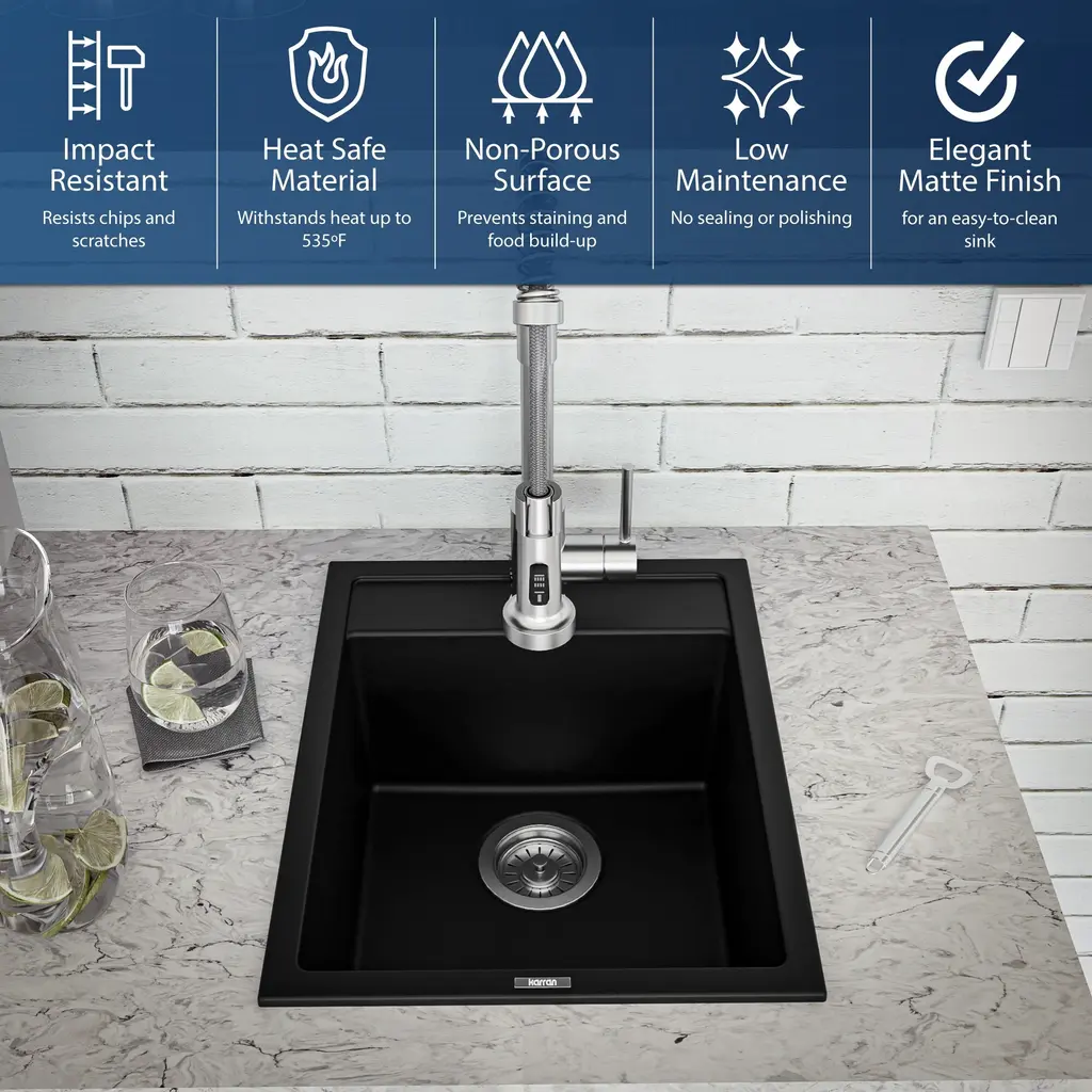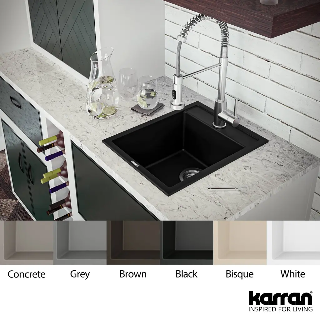 Karran Qt-825 Drop-In 15-3/4" Single Bowl Quartz Composite Kitchen Sink - Black