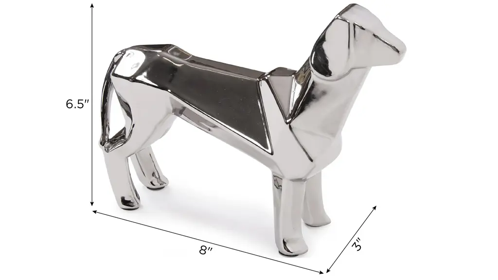 The Kaslo Dog Sculpture is highlighted in an electroplated silver finish. The high polished finish brings in an air of whimsy and yet showcases an artsy twist to the ordinary. Mans best friend is out of the doghouse and are now a hot accent pieces for a modern decor.