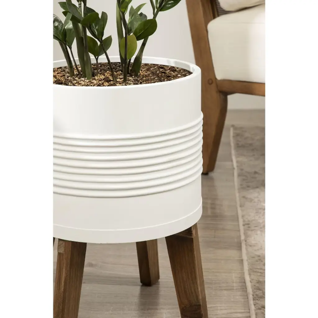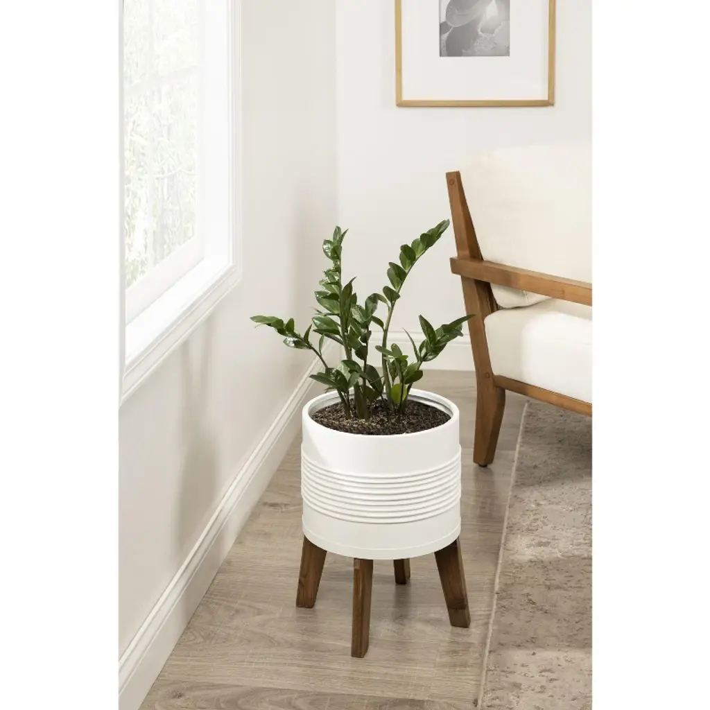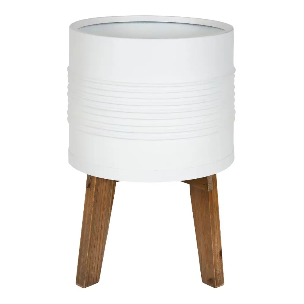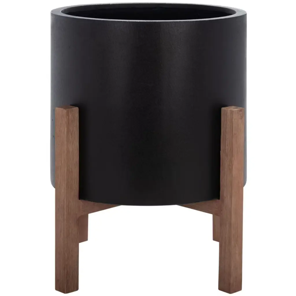 Create a rustic yet refreshing display of your favorite plants and succulents with the Gavri indoor planter. Inspired by farmhouse aesthetics, this beautiful planter features a ribbed metal pot with a black finish within a rustic brown wood base. The plant pot is crafted from rich iron with a robust solid mango wood base, creating a decorative accent lasting for years to come. The 11-inch diameter and raised height make it excellent for various uses throughout your home: use the Gavri to display faux plants or grow your greenery with a liner (not included). You can also use this farmhouse accent piece to store art or office supplies or act as a catch-all for other household necessities. Its removable pot allows for the capability to switch out elements in your Gavri planter on a seasonal basis or whenever you need a spatial refresh. The versatility and multifunctionality of the Gavri make it perfect for any living room, entryway console, bathroom vanity, and other places in the home.