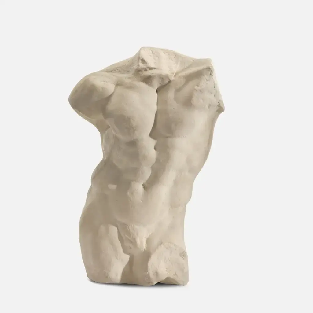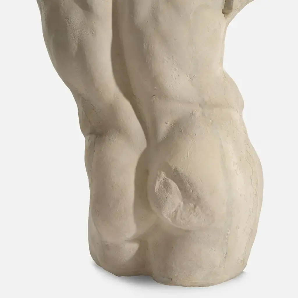 Inspired by European artisans, the Kempsey freestanding sculpted torso is crafted from reconstituted stone. This piece brings a touch of elegance and modern sophistication to any home, blending timeless artistry with contemporary design.