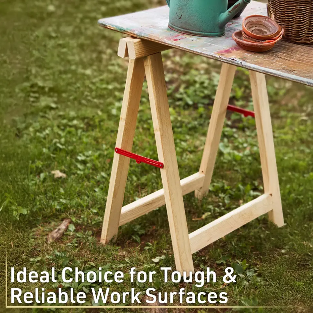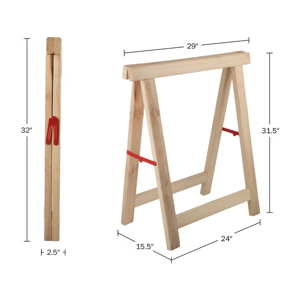 Easily create a tough and reliable temporary work surface with the Heavy Duty Work Sawhorse 2-Pack by Kings County Tools. These foldable saw horses are crafted from solid, untreated pine wood and engineered to stand up to just about any task you can throw their way, boasting exceptional sturdiness and durability with a 2,600 capacity for the pair. Add your choice of top to create an almost indestructible work surface at the ideal workbench height, whether you’re working with large materials, power tools, or high-impact hand tools. When the job is done, each trestle is compact and stackable for easy storage, taking up minimal space in your shop or garage.