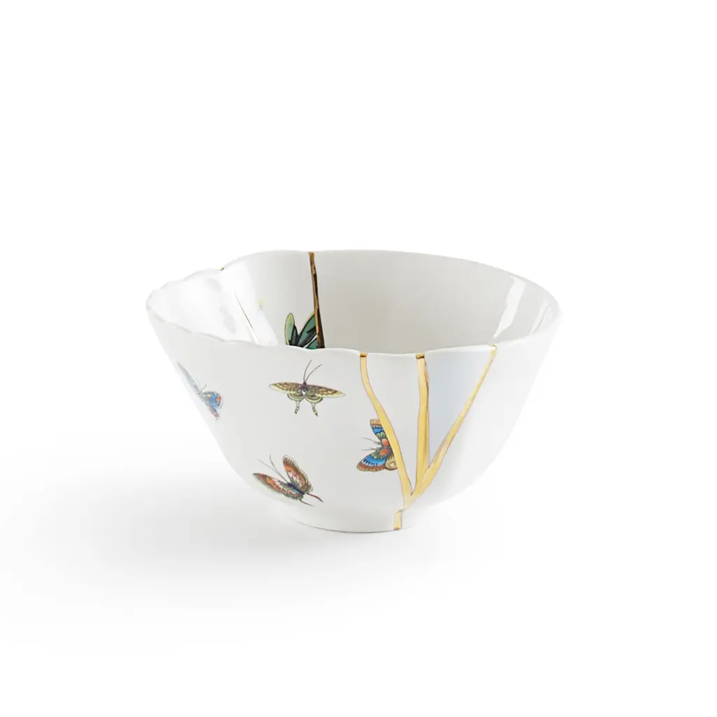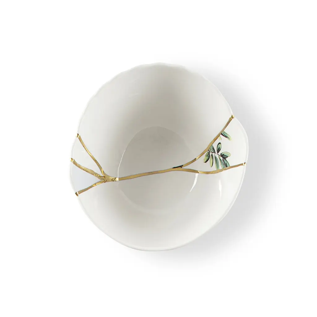Created by Marcantonio Raimondi Malerba for revolutionary brand Seletti, this Kintsugi Dinner Set features an imaginative design that builds upon a traditional Japanese technique. The Kintsugi collection offers a modern and original take on the ancient method of joining pottery pieces with a lacquer and gold powder mixture. In this range, different porcelain pieces come together to make a new item, with 24-carat gold lines linking the separate parts in a glamorous and striking way. The resulting design adds a fascinating accent to the dinner table, becoming a veritable conversation starter. Tableware transformed into sculpture, this collection revives the art of thoughtfully made and expertly crafted objects. Plates, mugs, trays, and cups from the same range are also available.