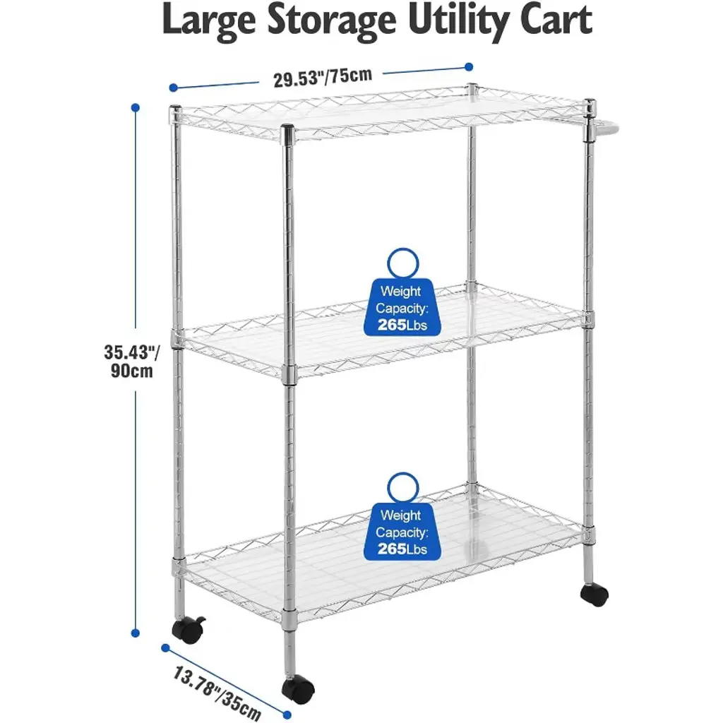 Kitchen Utility Cart, 3 Tires Steel Service Rolling Cart With Wheels And Storage Rack,metal Food Storage Trolley With Handle For Kitchen Restaurant