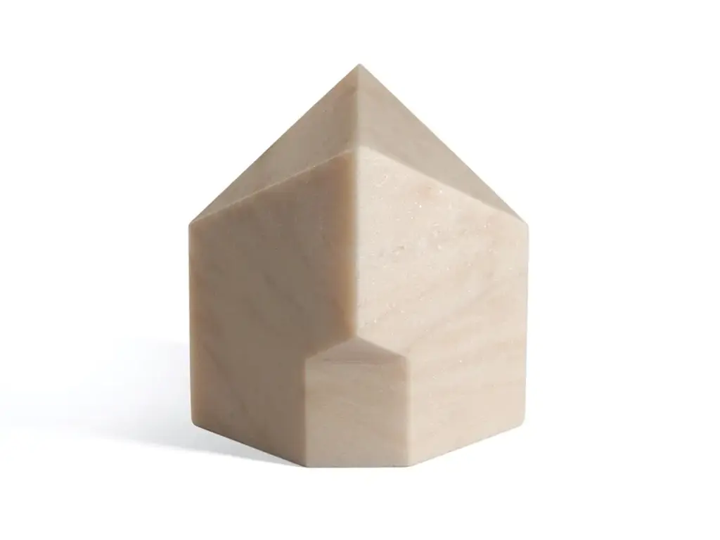 Kore is a marble ornament / sculpture.Salvatori invited a select group of designers to create their idea of home, an expression of their various cultures, backgrounds and outlooks. The result is a fascinating and wonderfully eclectic collection of miniature houses, that, like the global village we inhabit, reflect an extraordinary array of styles and approaches.Kore is the name given by Spanish designer Patricia Urquiola to her pair of contrasting yet complementary houses, in homage to the delicate but majestic statues of Ancient Greece that depict young women on the cusp of adulthood.Each piece is characterised by clean lines and a deceptively simple form. Alma is a tiny house in Rosa Portogallo marble, with its glorious colouring and veining, while Petra is made from travertine, an evocative and tactile material that epitomises the long tradition of natural stone in architecture and art.At a glance, you feel the warmth and intimacy of a true home, expressed through these two examples of mini-architecture with their different aesthetic and representation of two contrasting worlds. Part of a virtual, multi-faceted village, at their heart they share a sense of family and the intrinsic fascination of natural stone.“The Village is a reflection on domestic spaces, something that is more important than ever today. Home has become the centre of our lives, our town or city, our habitat. We have all become domestic navigators, trying to orient ourselves to these new latitudes, ways of living.” – Patricia UrquiolaThe Village is inspired by Gabriele Salvatori’s wish to explore the concept of home within the context of today’s global society and reinterpret it through the medium of design, whilst addressing fundamental themes of contemporary living. To recreate the rich and diverse structure of a typical village, we invited a select group of designers from around the world to share their idea of home, each bringing their own inimitable combination of outlooking, culture and background. The result is a fascinating and wonderfully eclectic collection of miniature houses, that, like the global village we inhabit, reflect an extraordinary array of styles and approaches. What links them, however, is the use of natural stone, that enduring and beloved material that has been used since time memorial to construct buildings, art and monuments that provide refuge and inspiration for mankind. From the very first rudimentary dwellings of cavemen and women, it has protected and enveloped us, the very same characteristics we still look for today when we choose our home, our haven. Designers such as Rodolfo Dordoni, Kengo Kuma, Elisa Ossino, John Pawson, Patricia Urquiola, Vincent Van Duysen and Yabu Pushelberg accepted our challenge, each contributing their precious and unique interpretation of the concept of home, expressed in a miniature piece of very special and absolutely original architecture. The Village is a natural continuation of Salvatori’s commitment to reinventing the concept of home décor by developing pieces that express “home” as a holistic experience that touches all our senses and nurtures our soul.